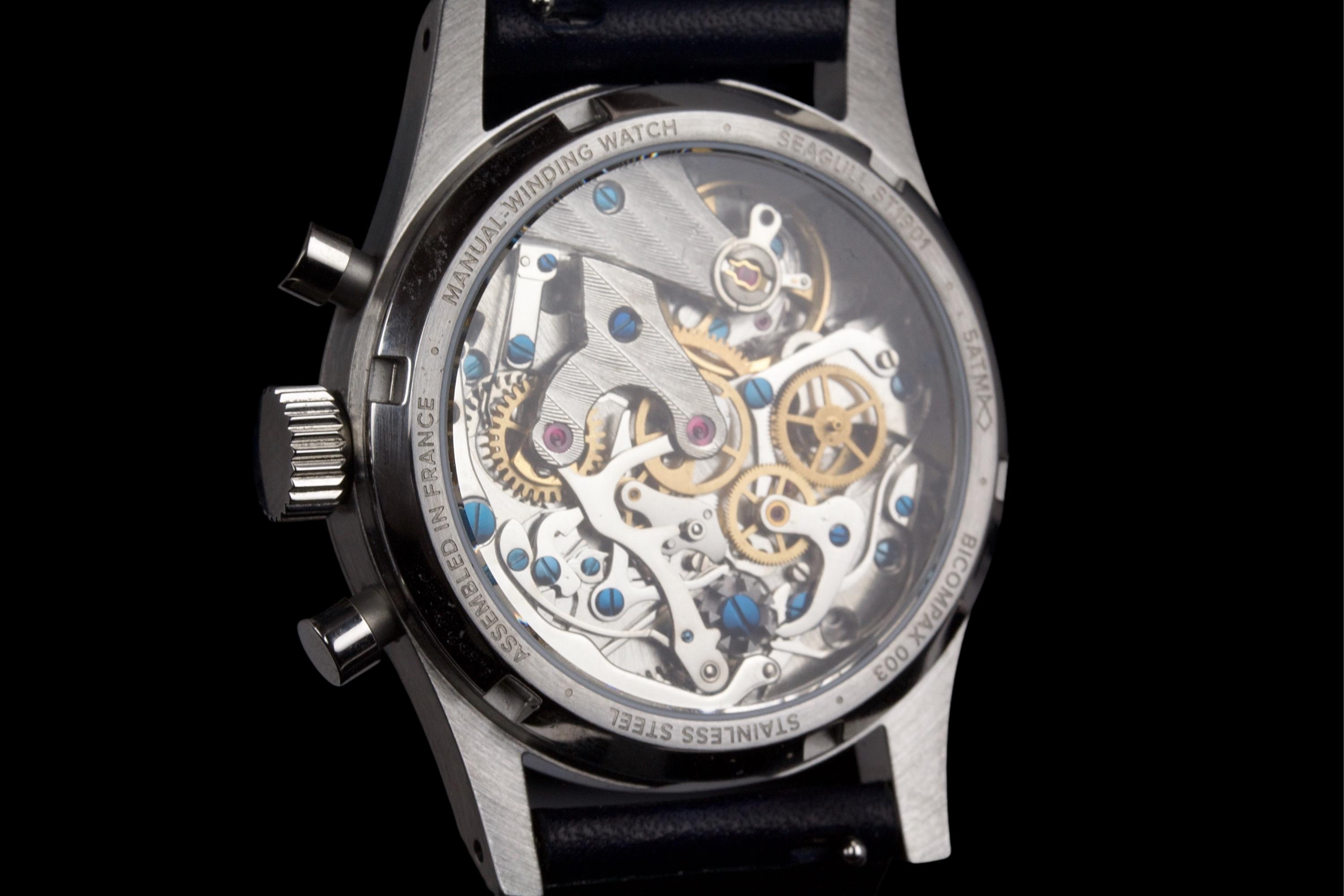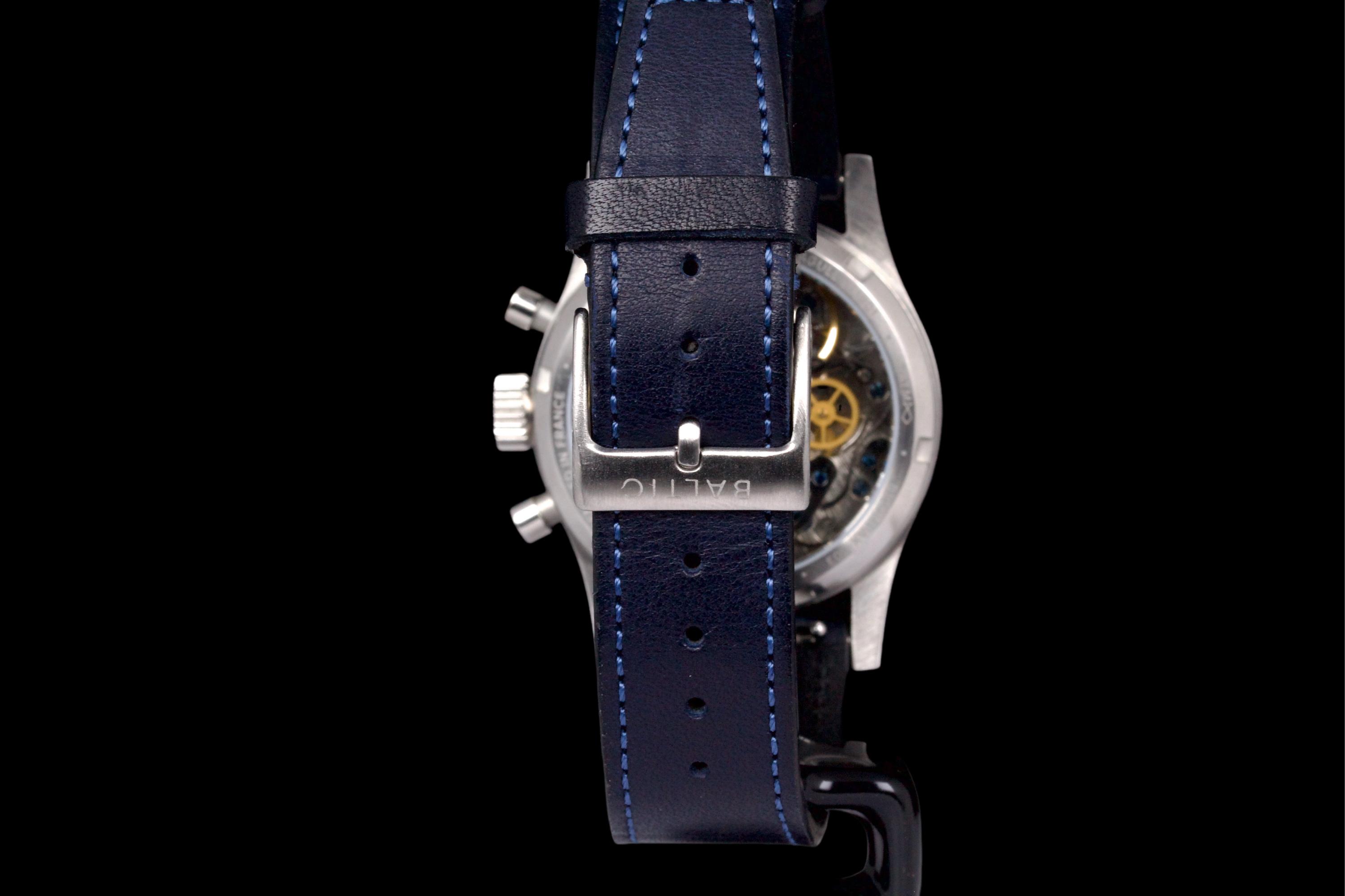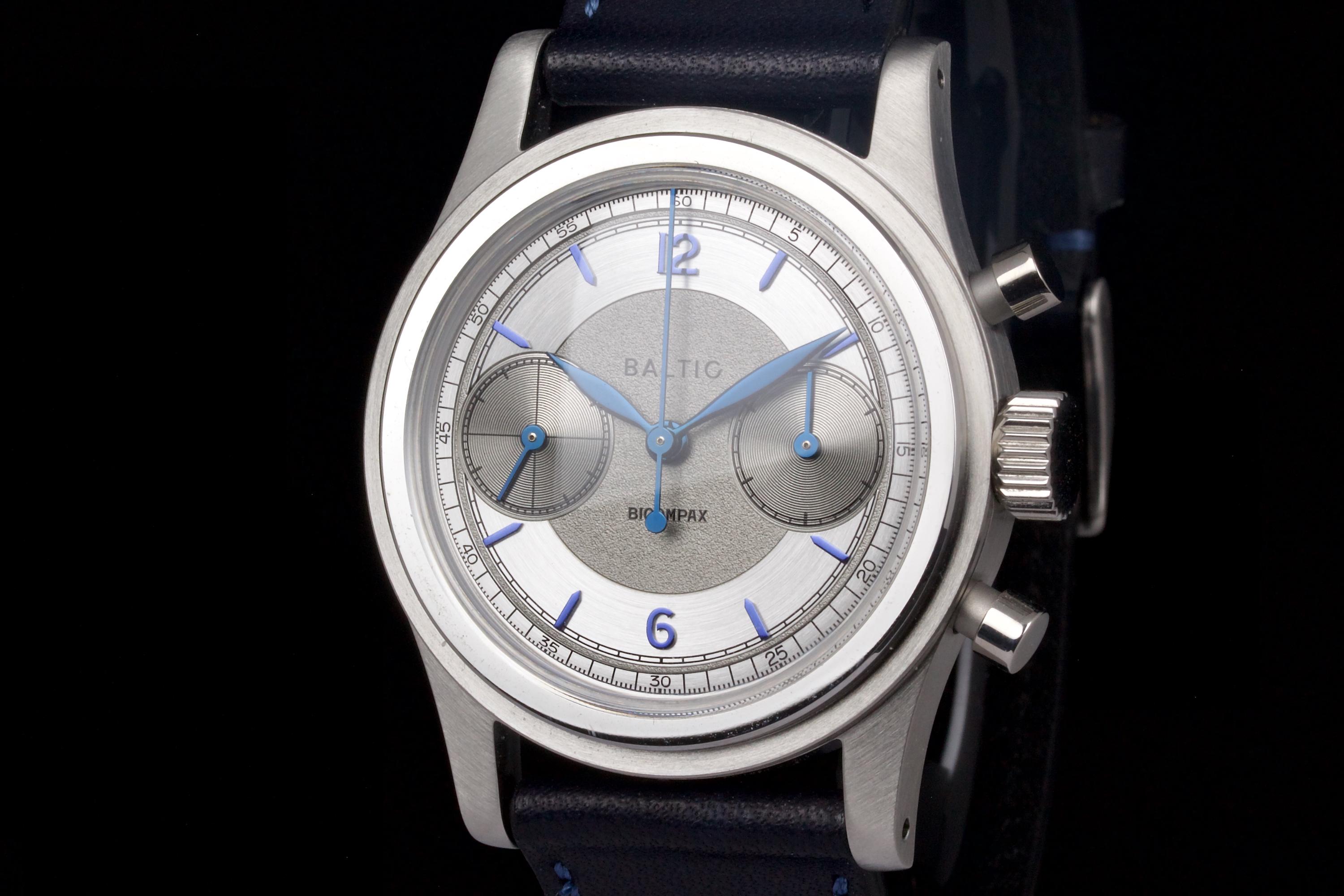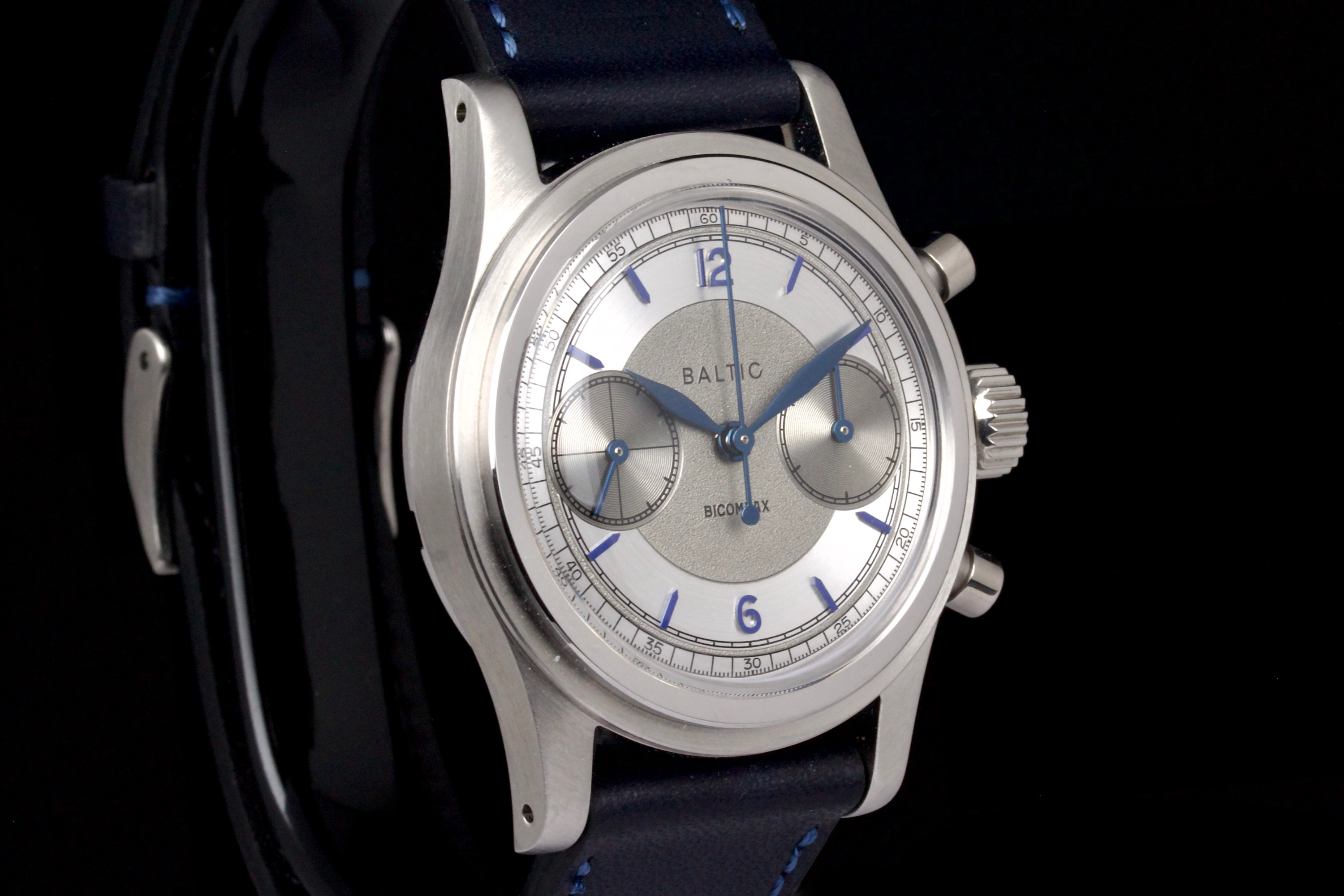 A beautiful example of the Baltic Bicompax 003 “Silver Blue,” presented in like-new condition. Featuring a 36.5 mm stainless steel case, this hand-wound chronograph combines a brushed silver dial with blue subdials and accents, offering a refined vintage-inspired look. Powered by the reliable Seagull ST1901 movement and fitted on a leather strap, it delivers both charm and precision. A stylish and elegant modern chronograph that perfectly blends 1940s aesthetics with contemporary craftsmanship.