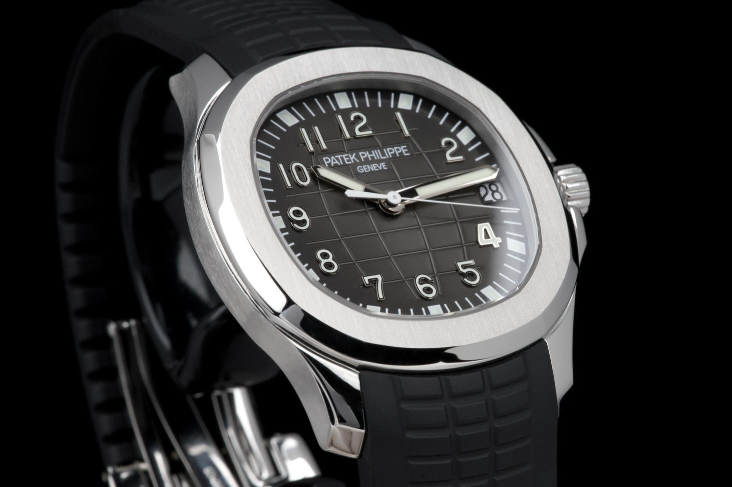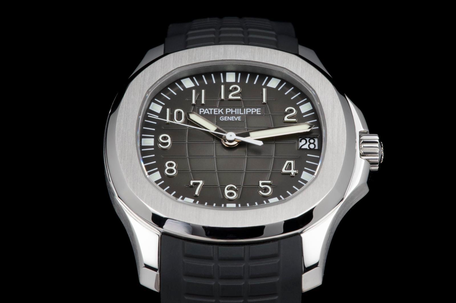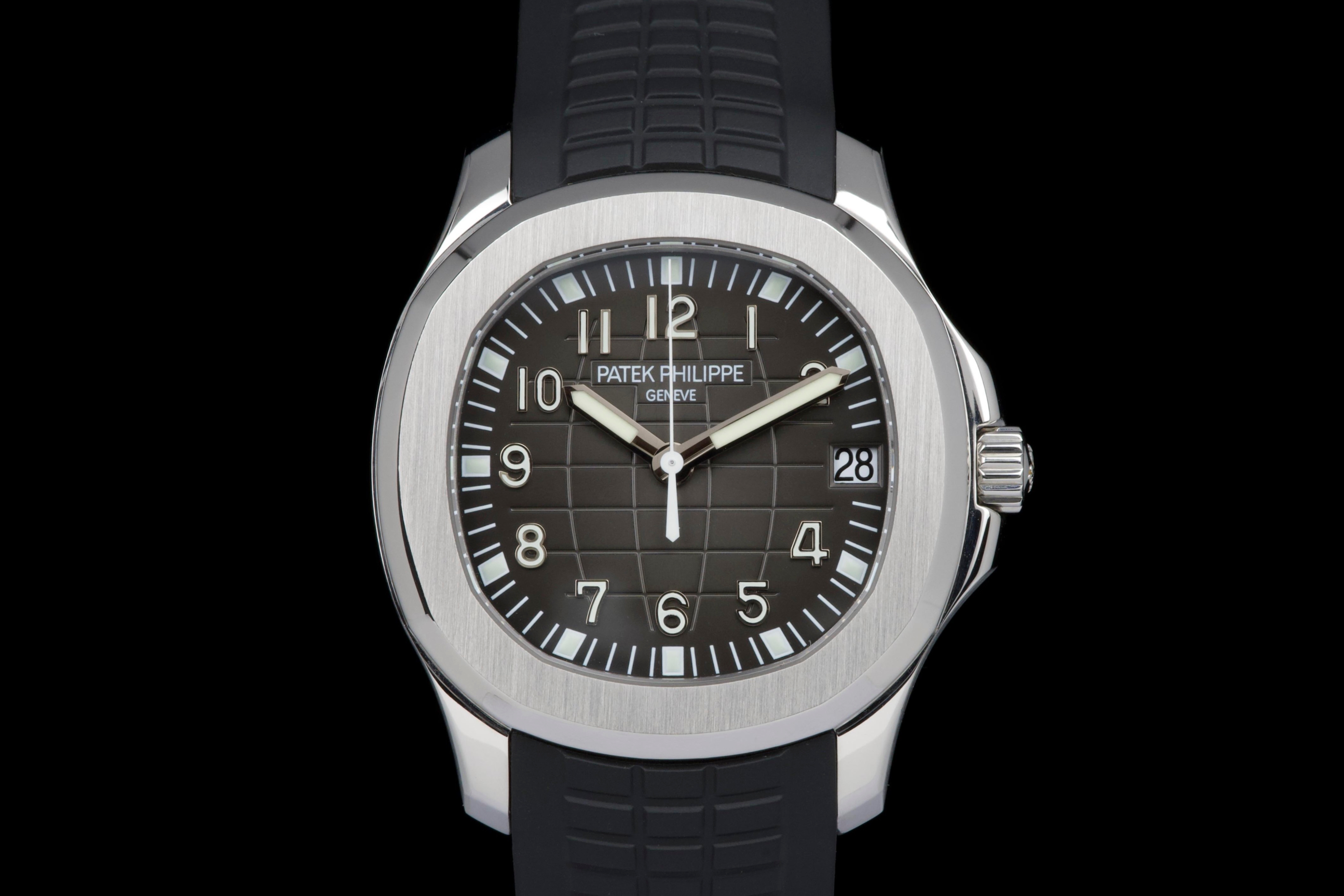Presented here is a rare and highly appealing example of the Patek Philippe Aquanaut reference 5165, the so-called “Jumbo” Aquanaut, distinguished by its elegant 38mm case. Produced in 2009, this short-lived reference is particularly sought after for its balanced proportions, bridging the gap between the original Aquanaut and later, larger iterations. The watch has been professionally polished by our watchmaker and today presents in very clean overall condition. The movement has been checked and is in proper working order. Accompanied by its original papers, booklets, and leather document holder, this example is offered without the original box. A refined and wearable expression of the Aquanaut line, this reference 5165 offers understated sport elegance and increasing collectability, making it an attractive opportunity for collectors seeking a rare and well-presented Patek Philippe sports watch.
