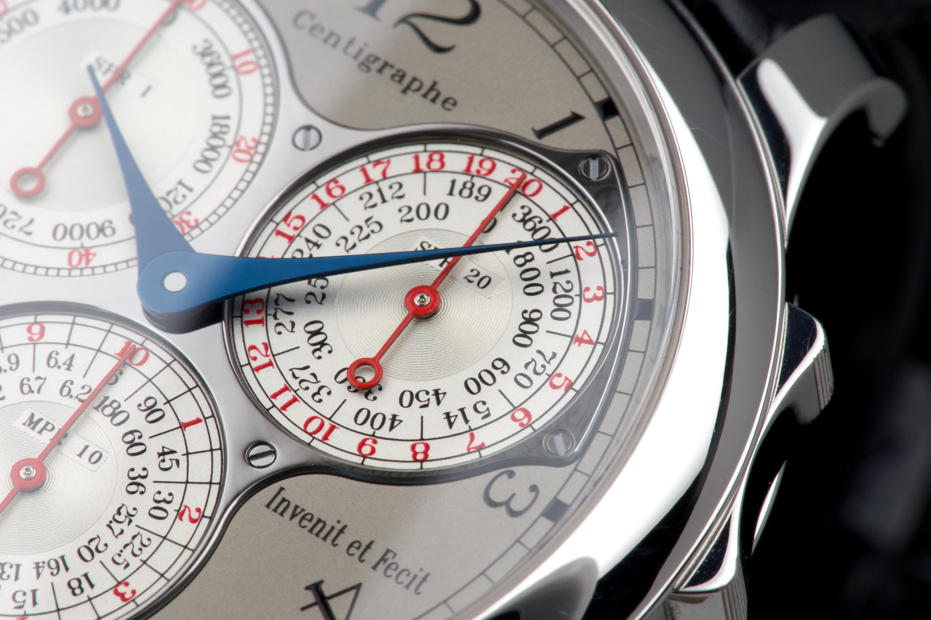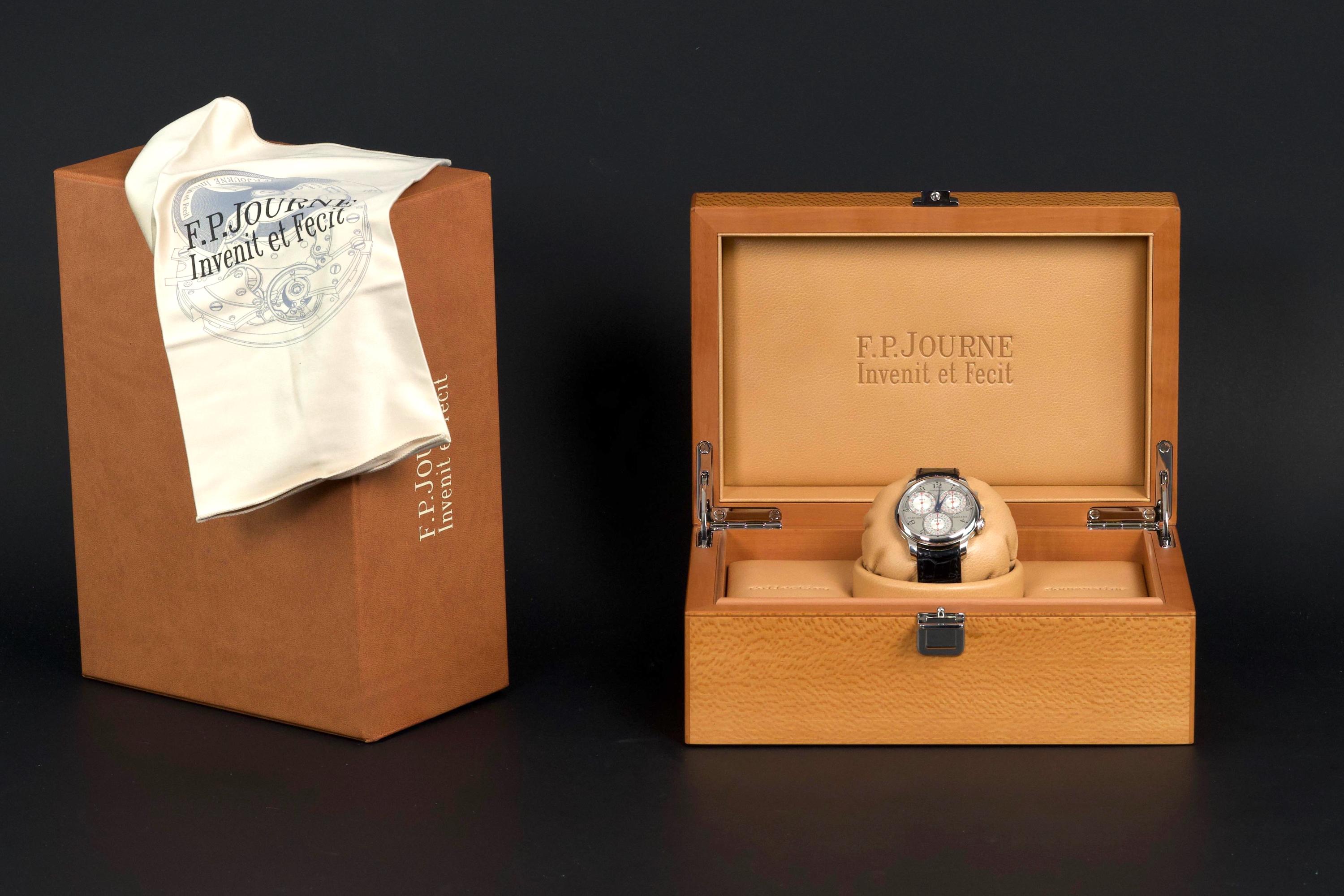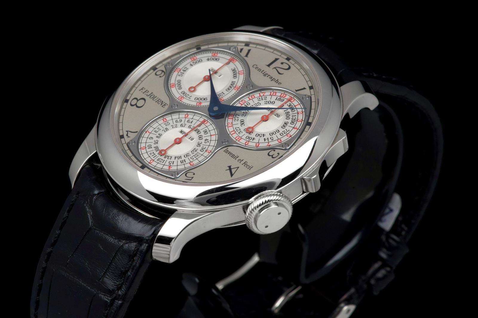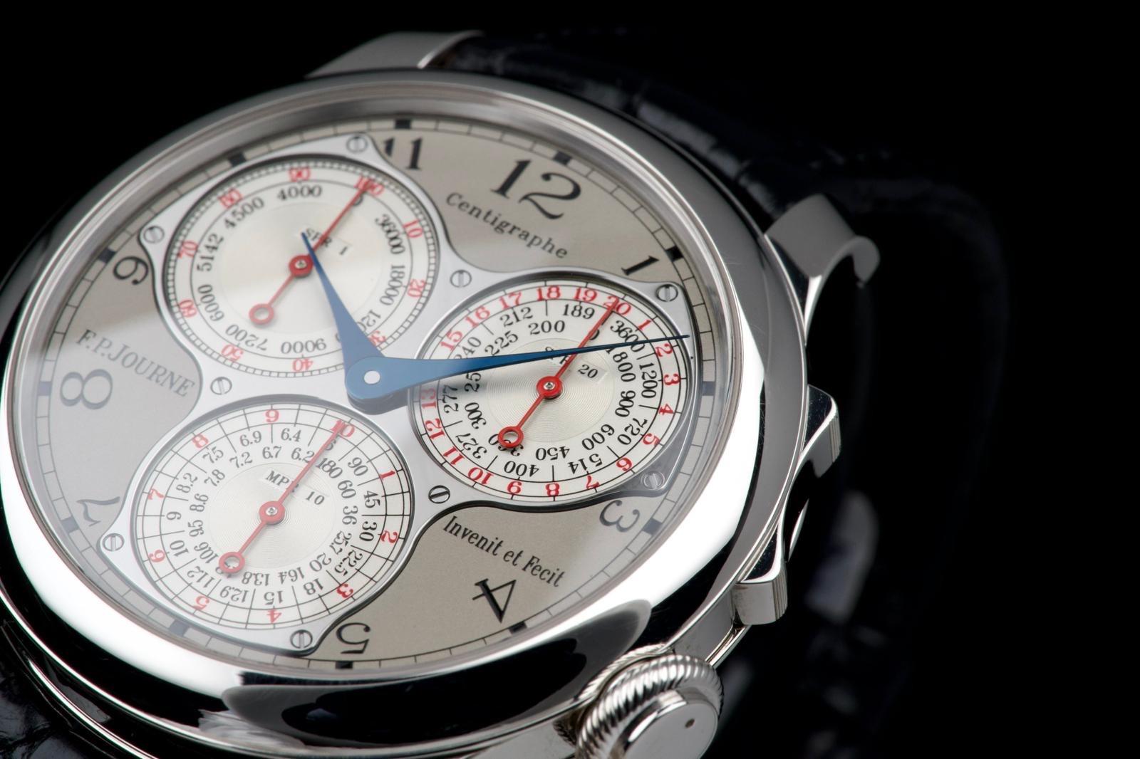 The present François-Paul Journe Centigraphe in platinum, dating to circa 2013, is a highly compelling example of the independent watchmaker’s most technically innovative and intellectually engaging creations. Executed in platinum, the watch perfectly reflects Journe’s uncompromising approach to haute horlogerie, combining mechanical originality with restrained and timeless elegance. The watch appears to have never been polished and is preserved in excellent overall condition, retaining crisp case lines and a strong, well-defined presence on the wrist. It is in excellent working order at the time of cataloguing. While no service history accompanies the watch, its mechanical performance is sound and consistent. The Centigraphe complication is one of François-Paul Journe’s signature inventions, offering a unique chronograph architecture with independent one-second, twenty-second, and ten-minute counters, each driven directly by the movement. This unconventional construction allows for exceptional precision and clarity while showcasing Journe’s distinctive horological philosophy and technical creativity. The watch is fitted with a black alligator leather strap and a platinum ardillon buckle, completing the ensemble with understated coherence and elegance. It is delivered with its original presentation box only; the original papers are not present. Rare, mechanically fascinating, and preserved in honest, seemingly unpolished condition, this platinum Centigraphe from circa 2013 represents a significant opportunity to acquire an important and highly respected work from one of the most influential independent watchmakers of the modern era