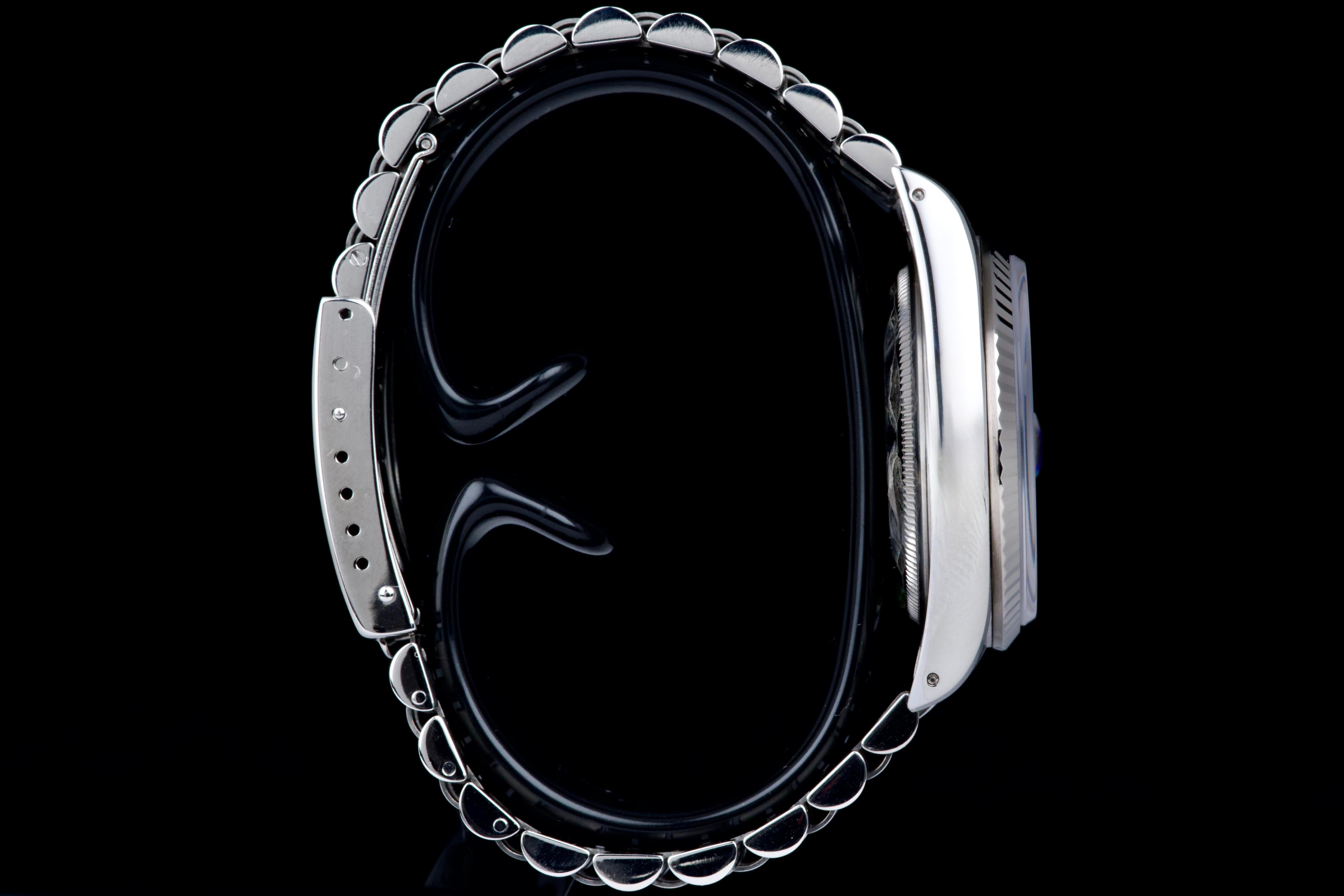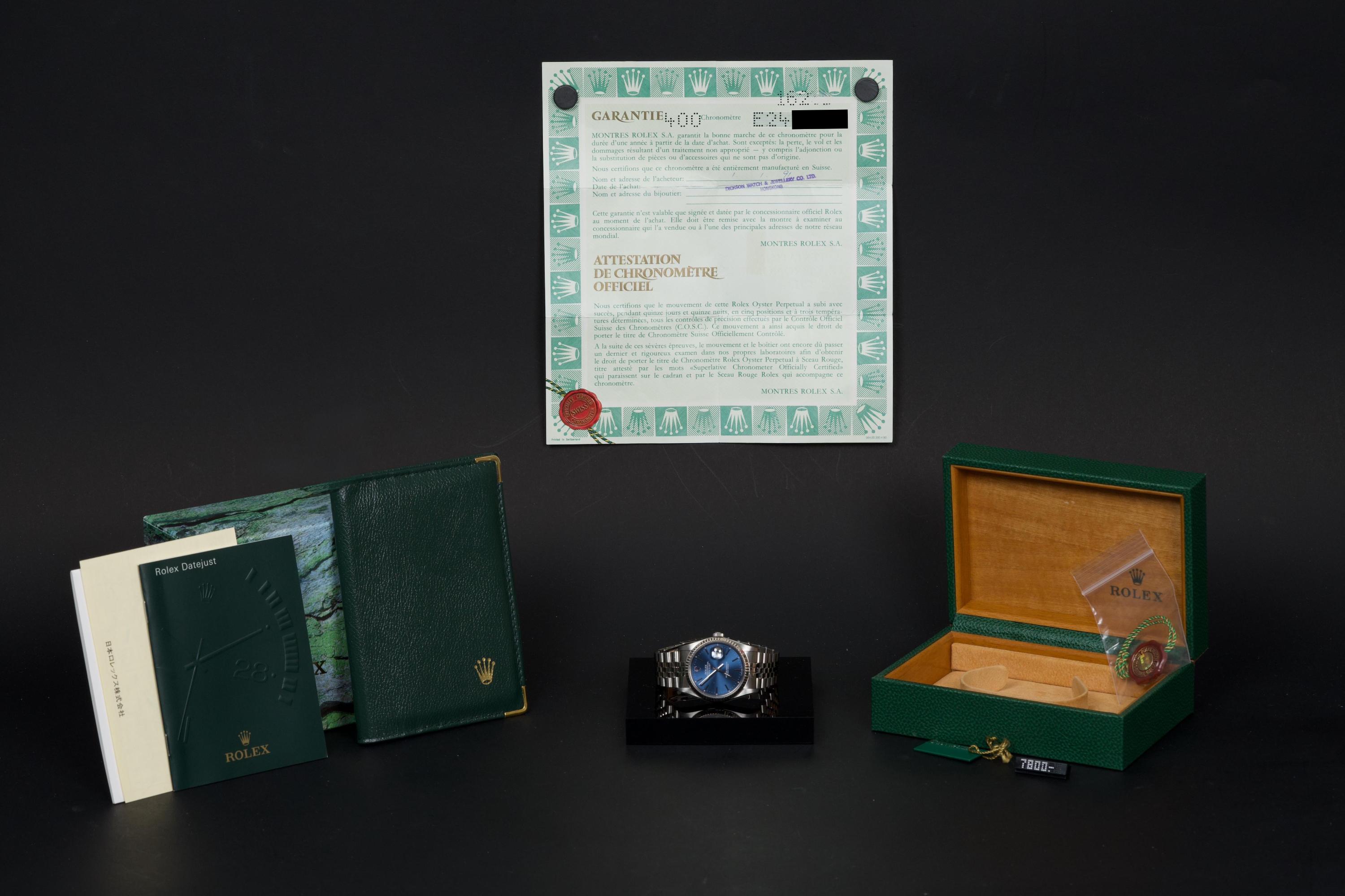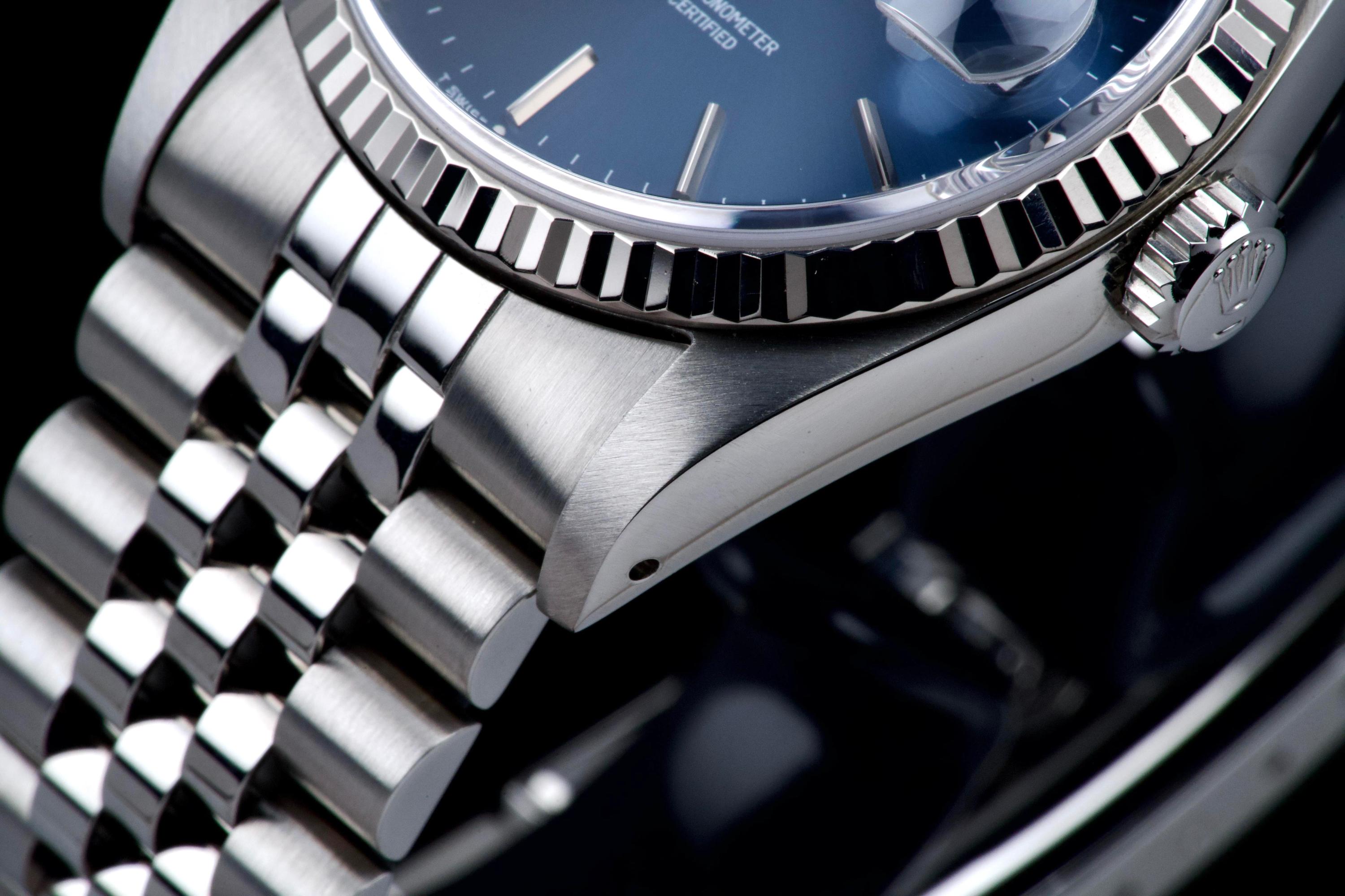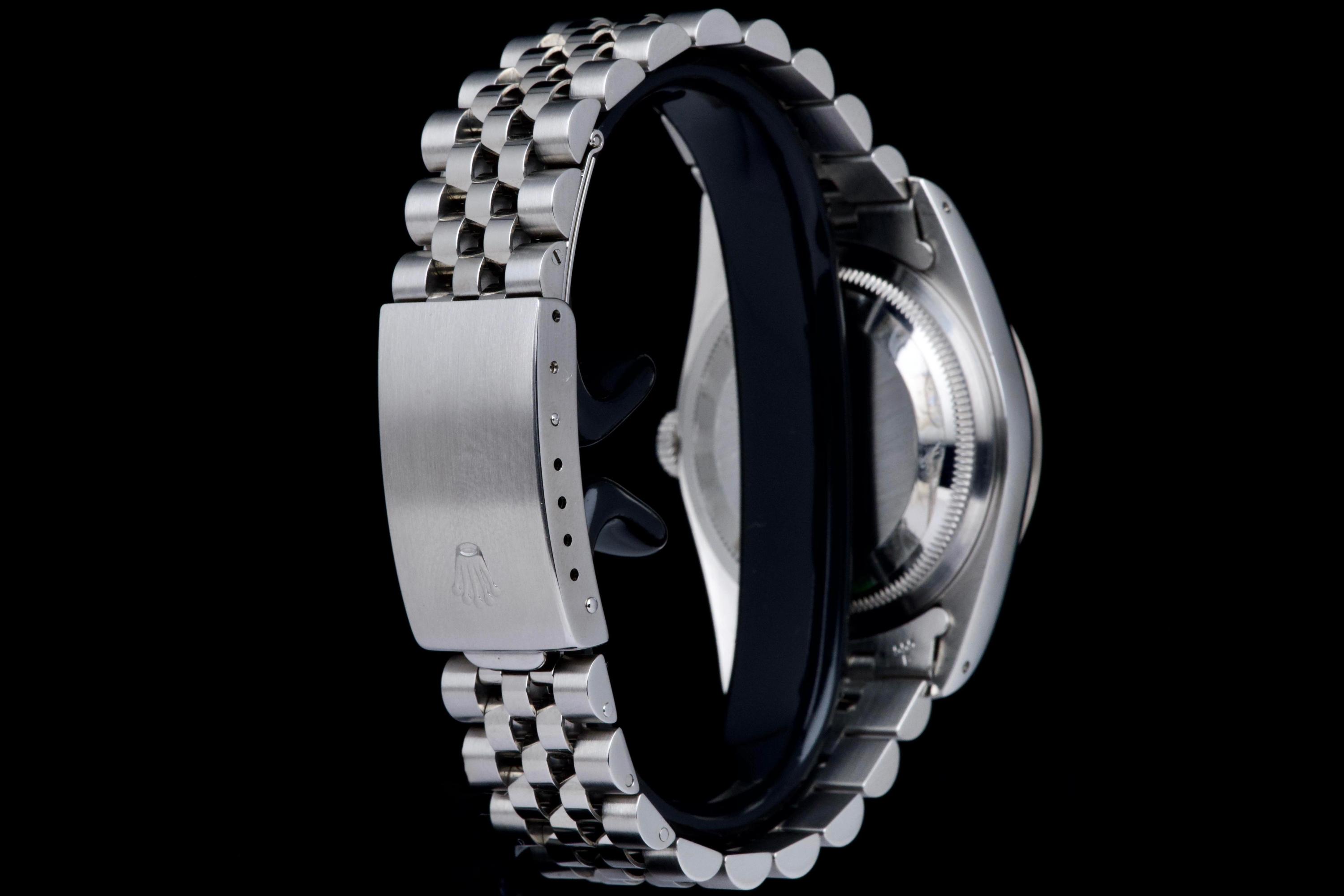 The Rolex Datejust 36 reference 16234, dating to circa 1990, is offered as a complete full set and represents a timeless expression of one of the brand’s most iconic models. The watch features a 36 mm stainless steel Oyster case complemented by an 18k white gold fluted bezel, creating the elegant contrast that defines the Datejust line. Its classic dial configuration offers a refined and highly versatile aesthetic, enhanced by applied hour markers and the signature date display at 3 o’clock with Cyclops magnification. Powered by a reliable automatic Rolex movement, the watch ensures precise and dependable performance for everyday wear. It is fitted with its matching bracelet, providing both comfort and a balanced presence on the wrist. The watch has been recently serviced and polished by our watchmaker and is presented in very good overall condition, with a clean and refreshed appearance. Offered with its full original set including box, warranty papers, and accessories, this reference 16234 represents an excellent opportunity to acquire a classic and enduring Rolex model suitable for any occasion.