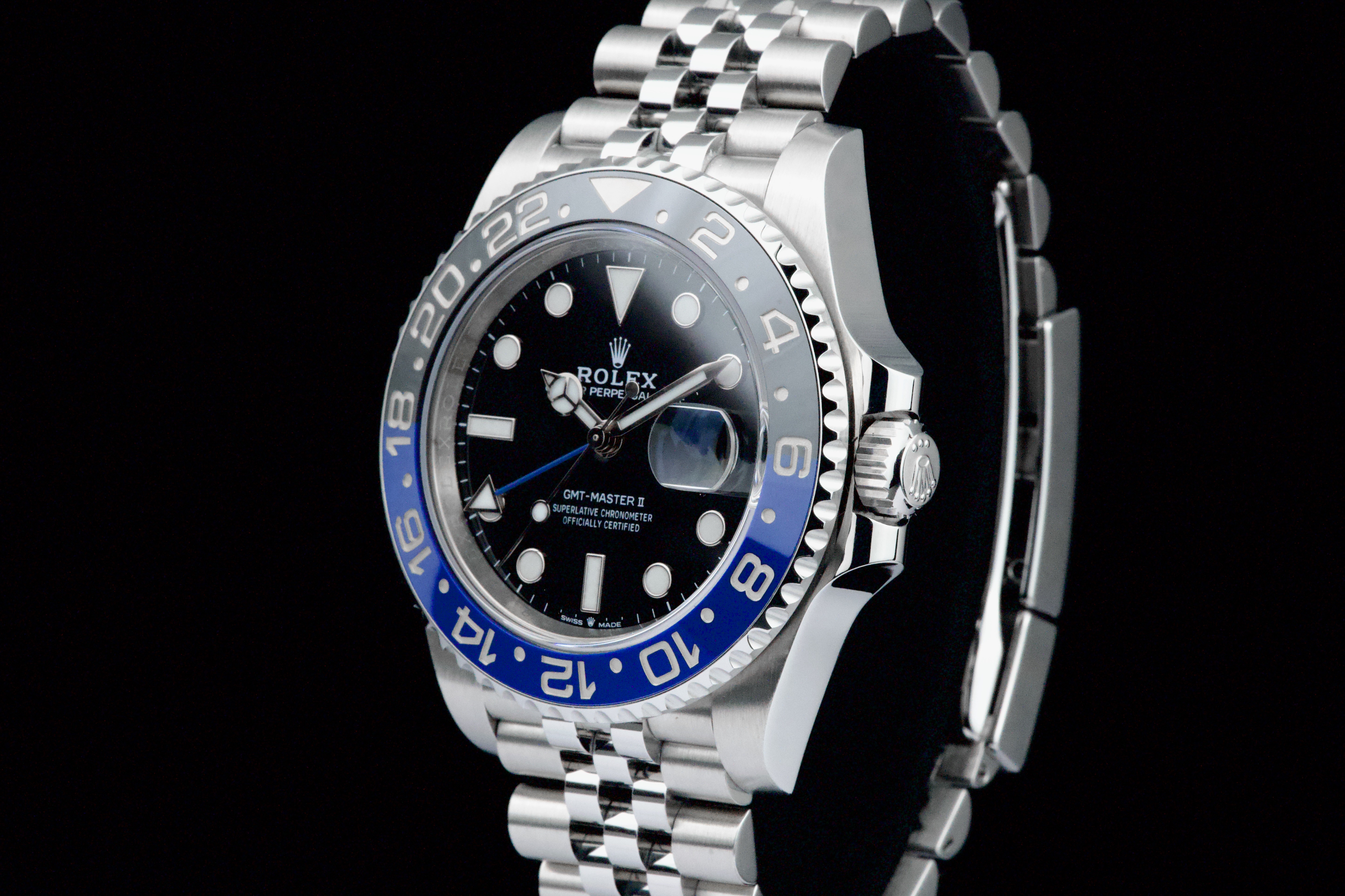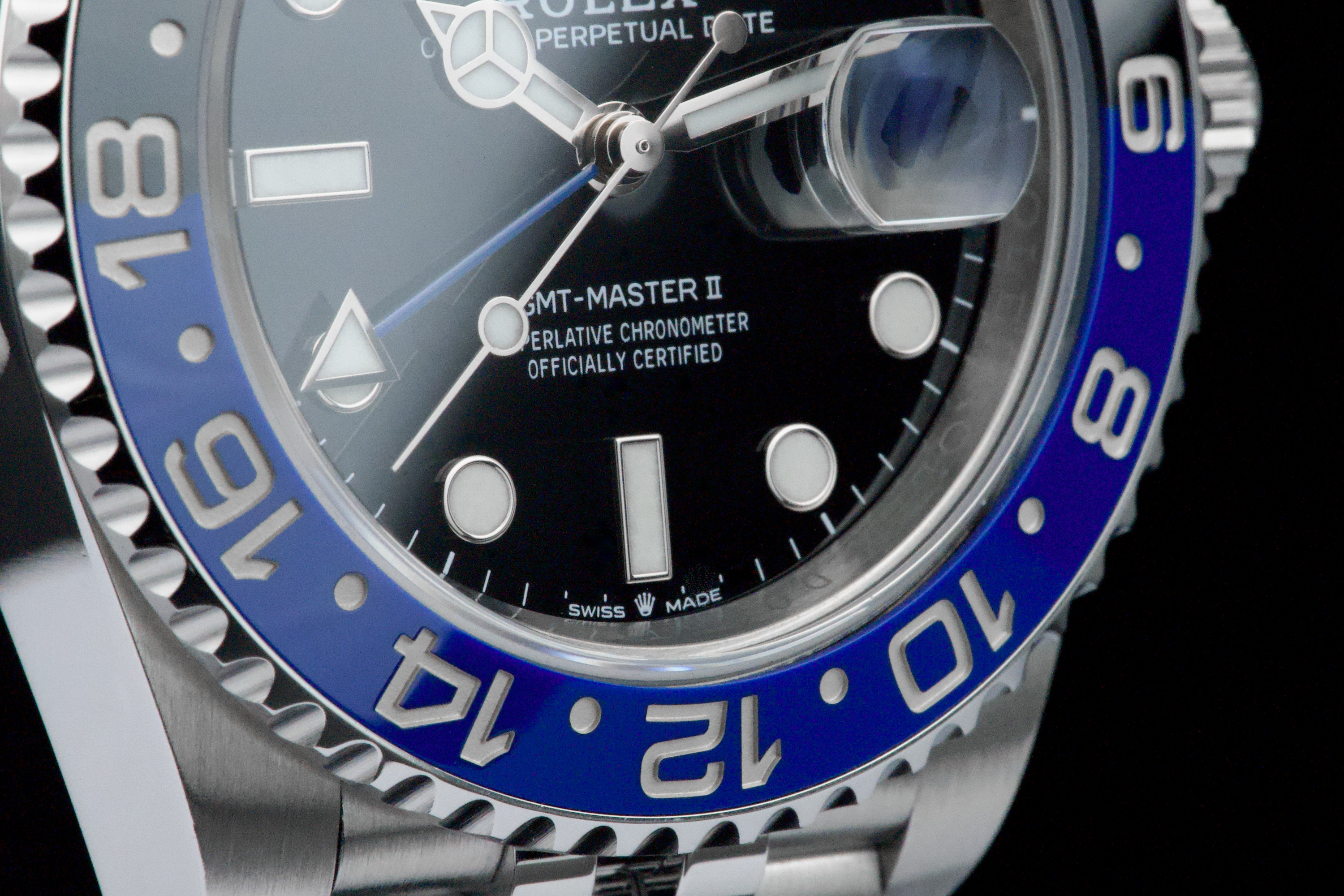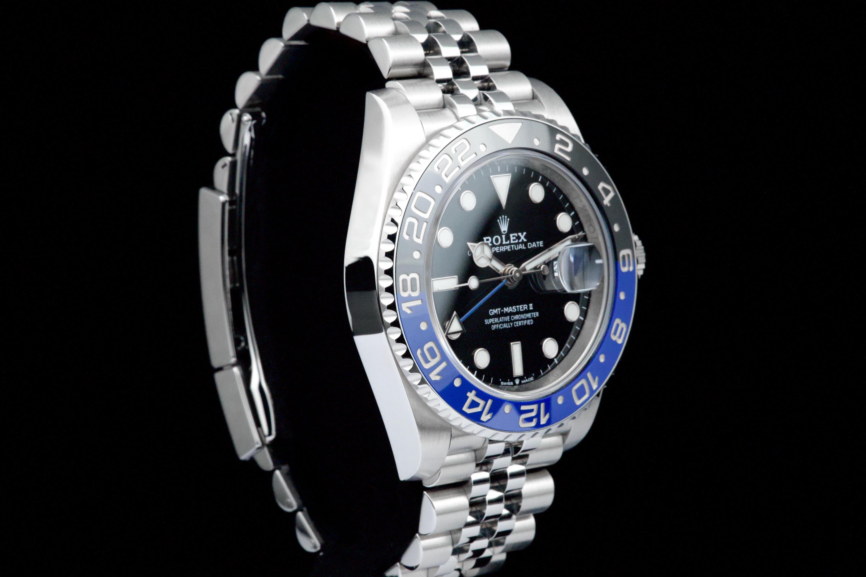 A superb example of the modern GMT-Master II “Batgirl” on Jubilee bracelet, coming from its original owner. The watch has just returned from being professionally polished and is presented in top overall condition. Featuring the black and blue Cerachrom bezel and black dial, this reference combines modern Rolex design with iconic GMT aesthetics. Powered by the automatic caliber 3285 with 70-hour power reserve and Chronergy escapement. Complete with its original box, 2023 warranty card, booklets, and accessories. A sharp and clean example of one of the most sought-after modern GMT-Master II models.