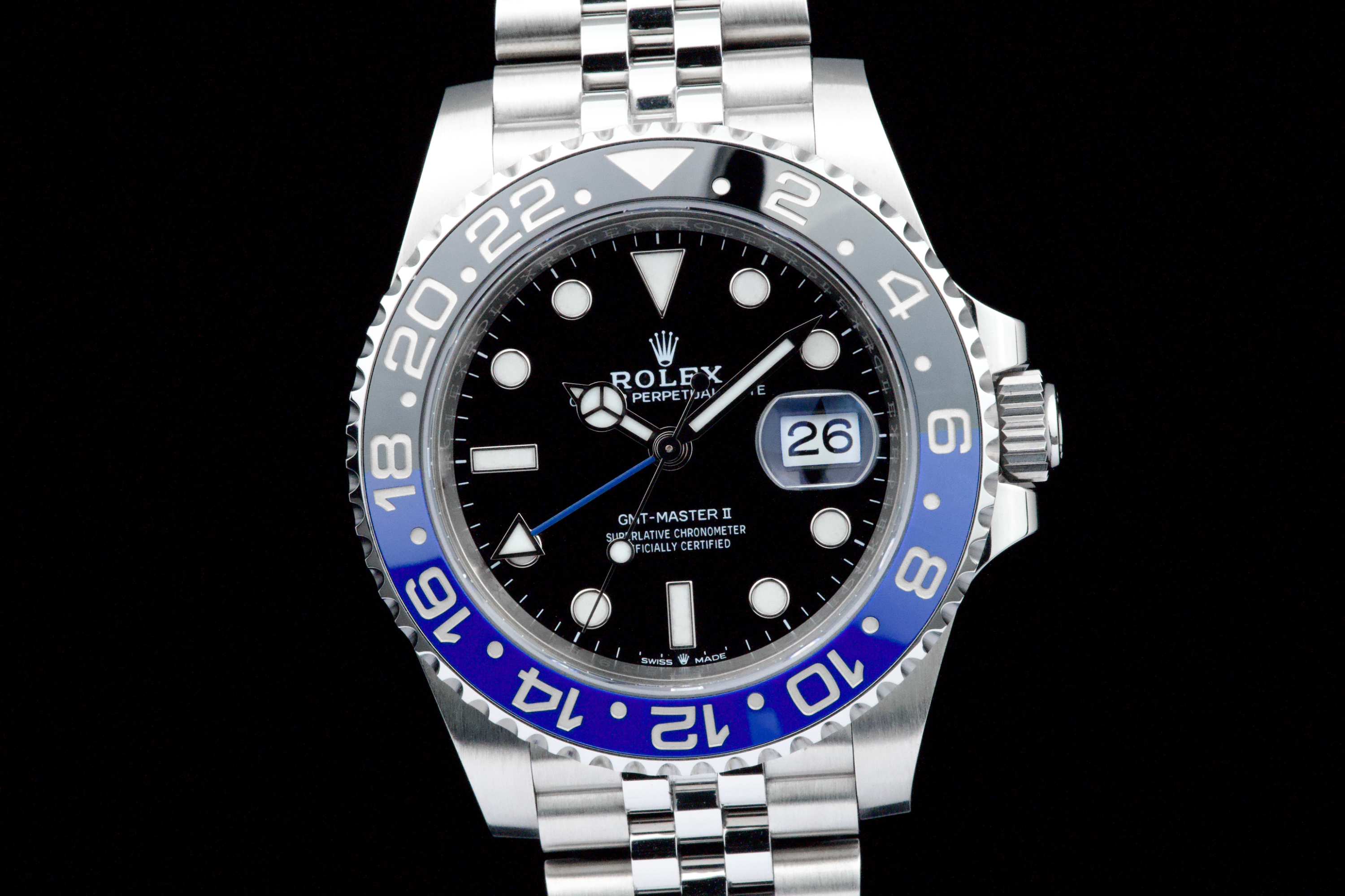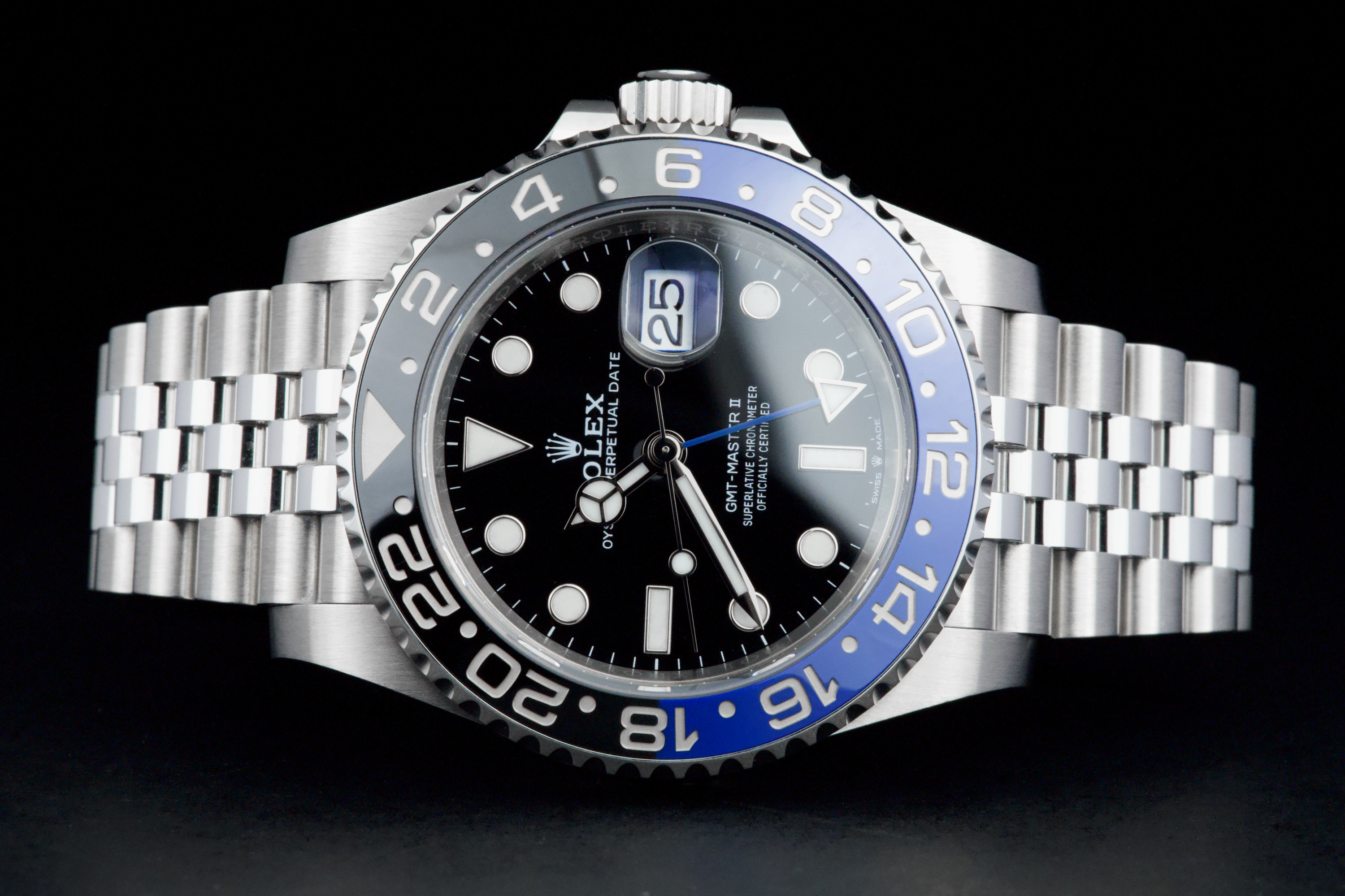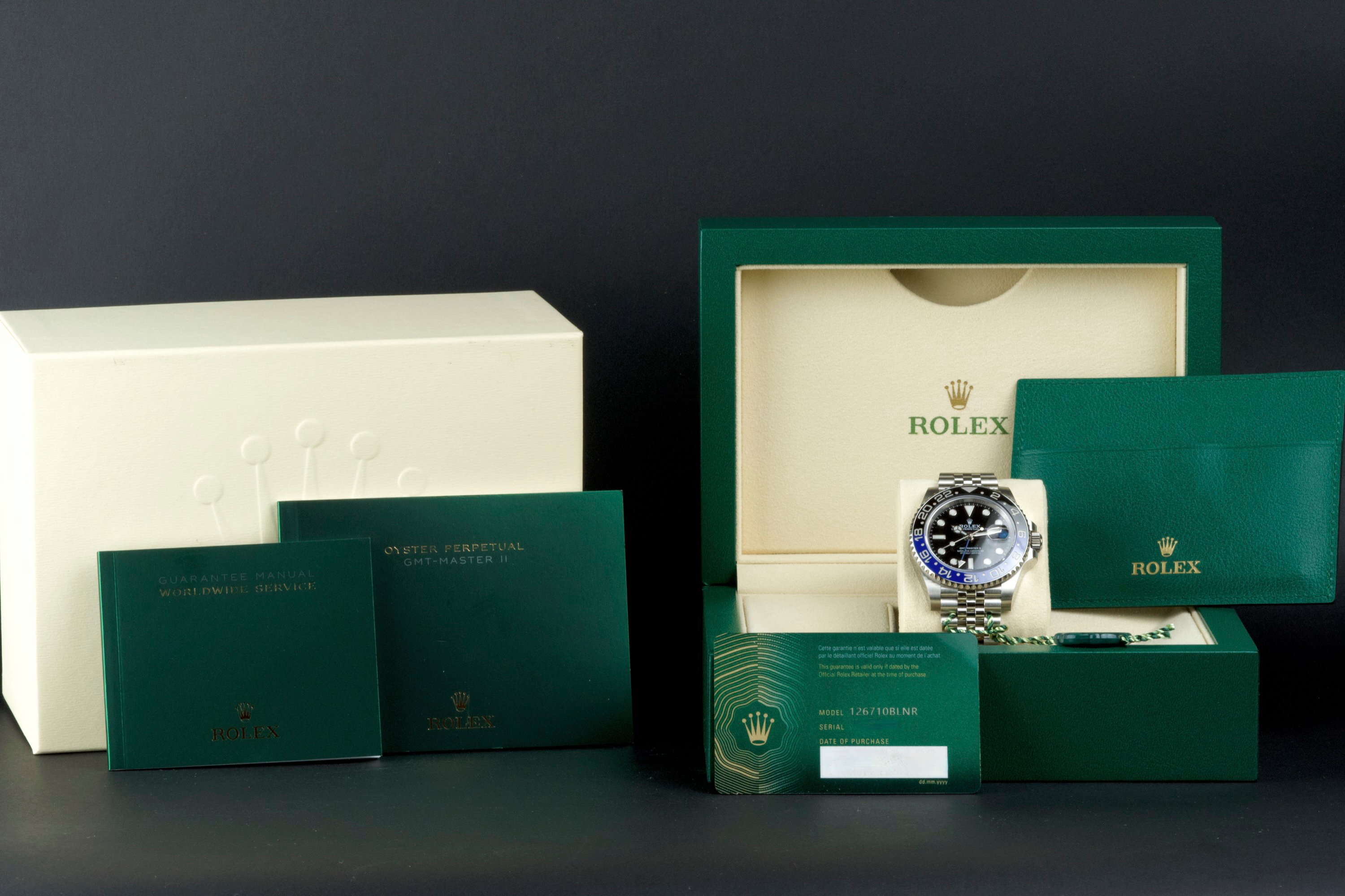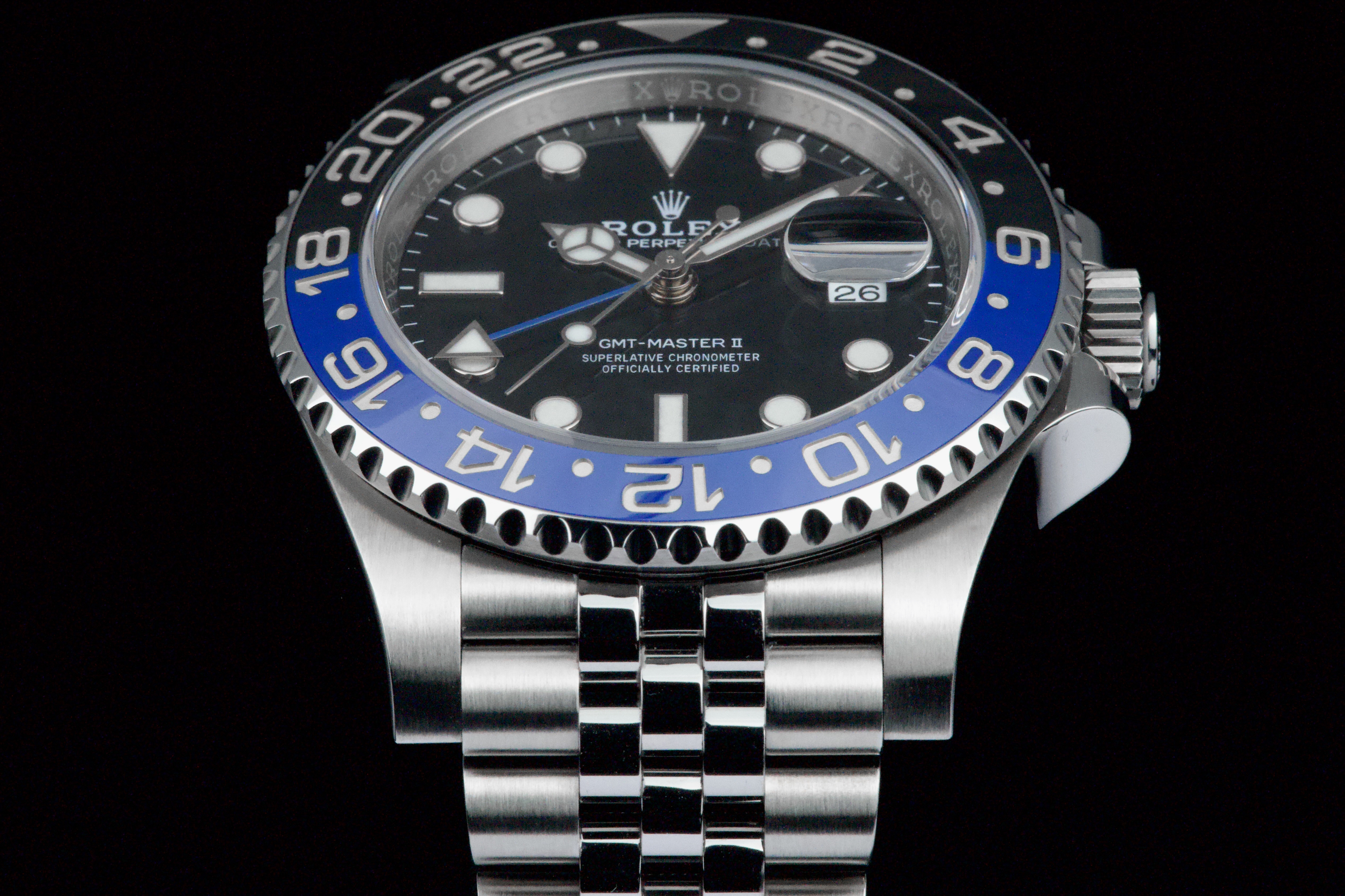 A superb example of the modern GMT-Master II “Batgirl” on Jubilee bracelet, coming from its original owner. The watch has just returned from being professionally polished and is presented in top overall condition. Featuring the black and blue Cerachrom bezel and black dial, this reference combines modern Rolex design with iconic GMT aesthetics. Powered by the automatic caliber 3285 with 70-hour power reserve and Chronergy escapement. Complete with its original box, 2023 warranty card, booklets, and accessories. A sharp and clean example of one of the most sought-after modern GMT-Master II models.