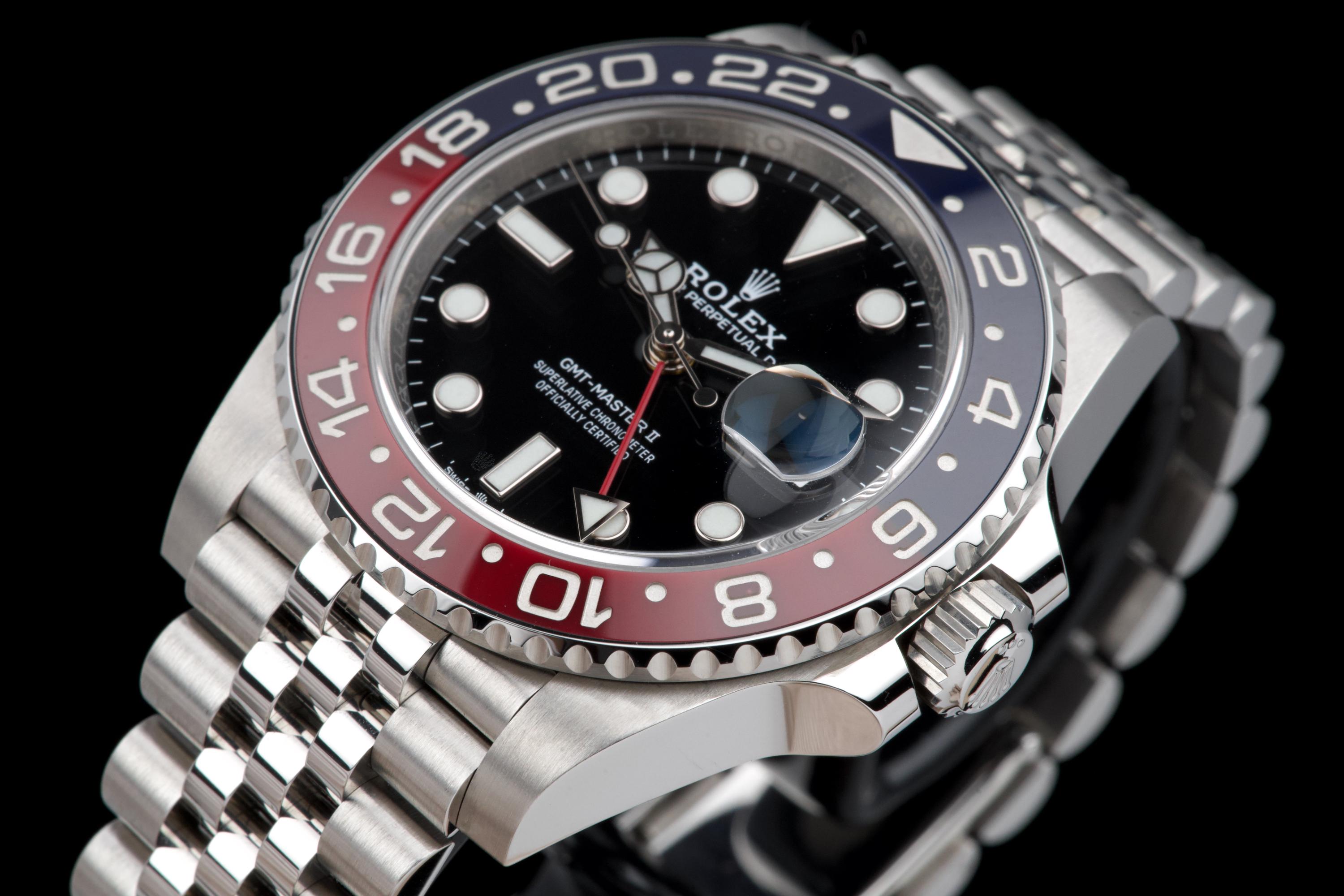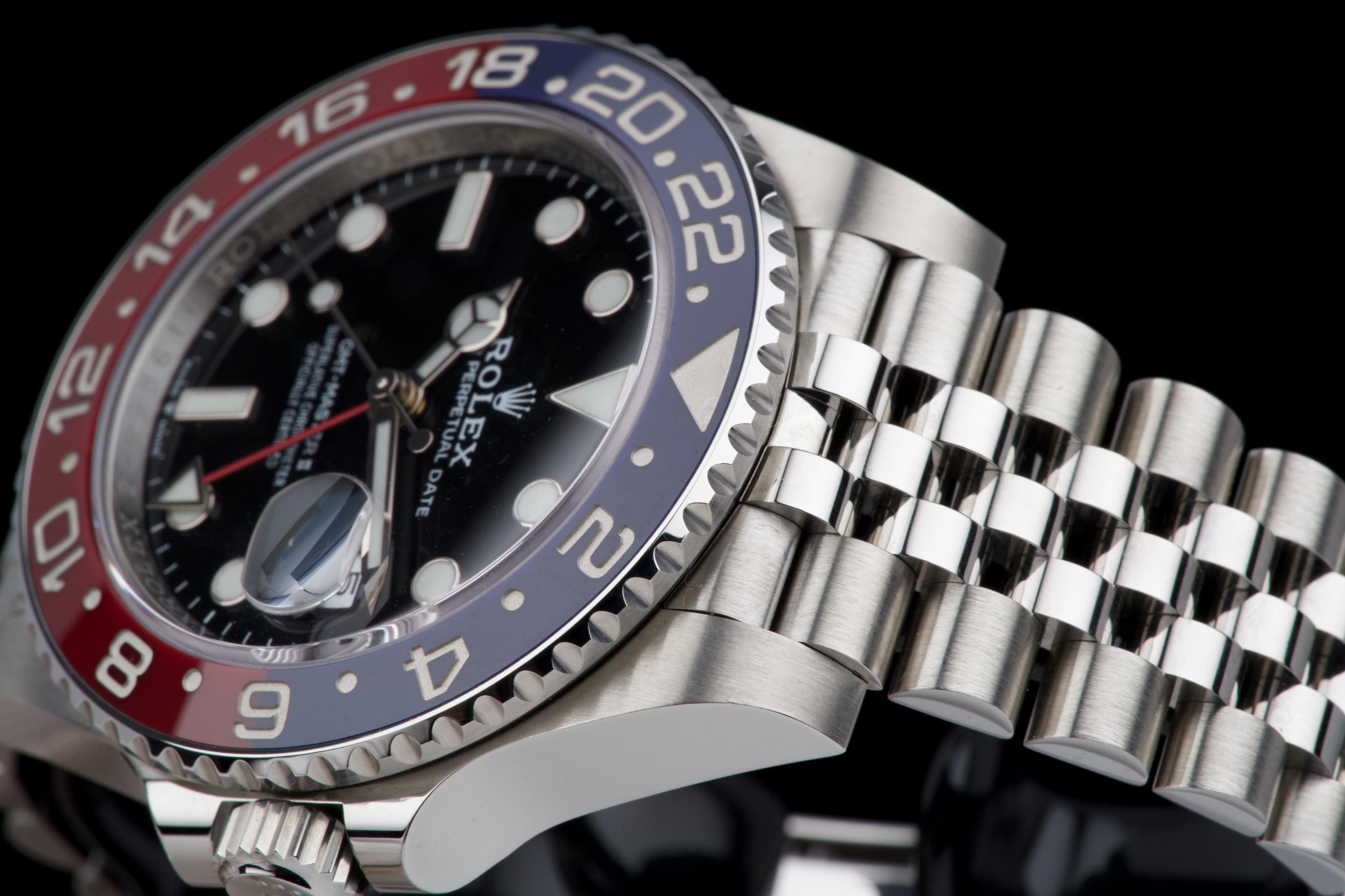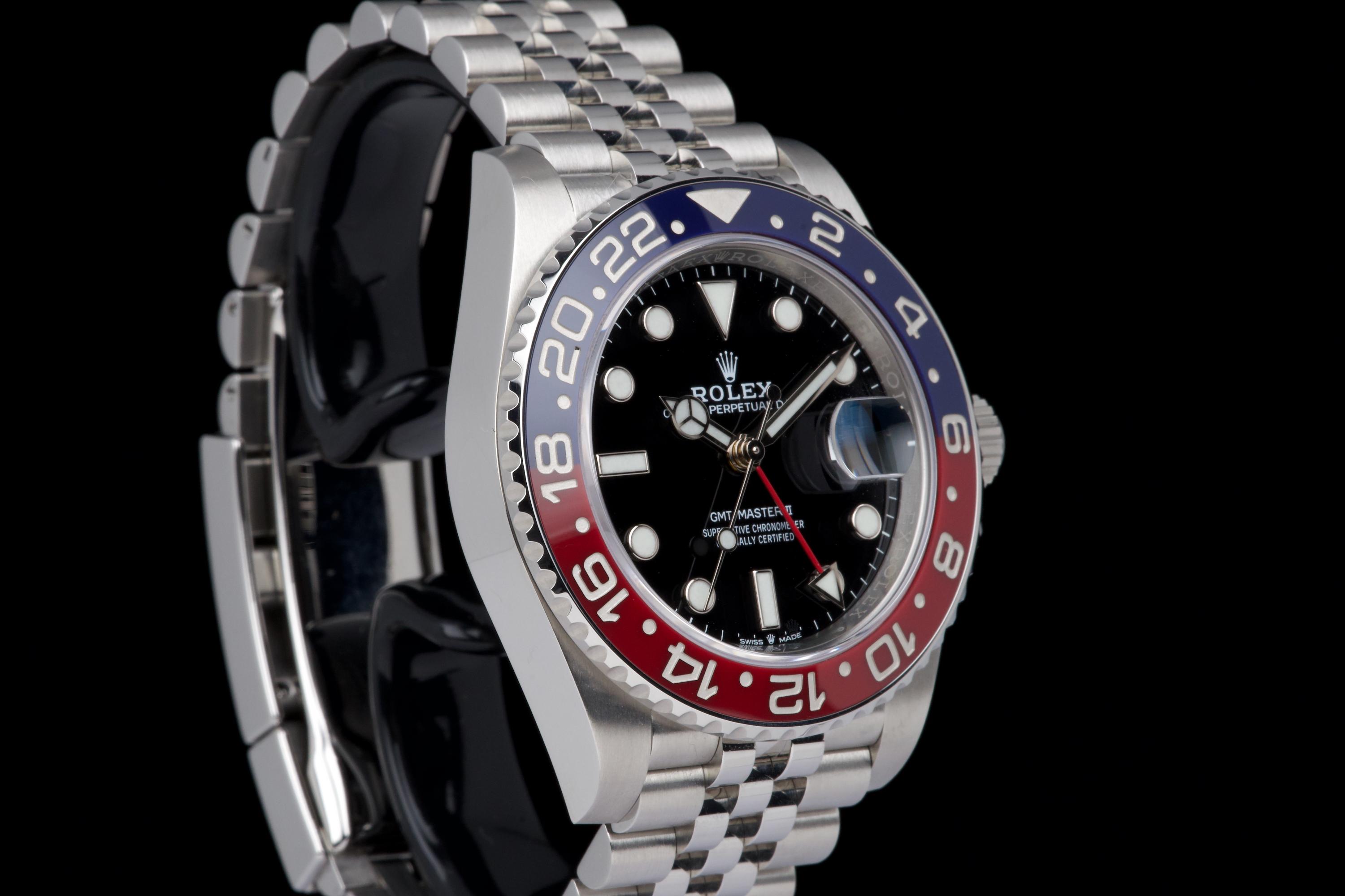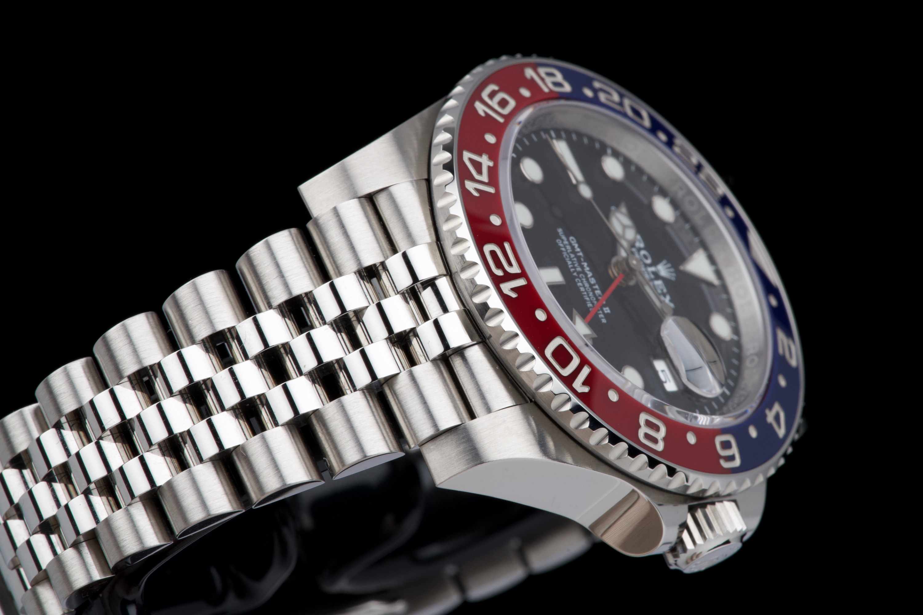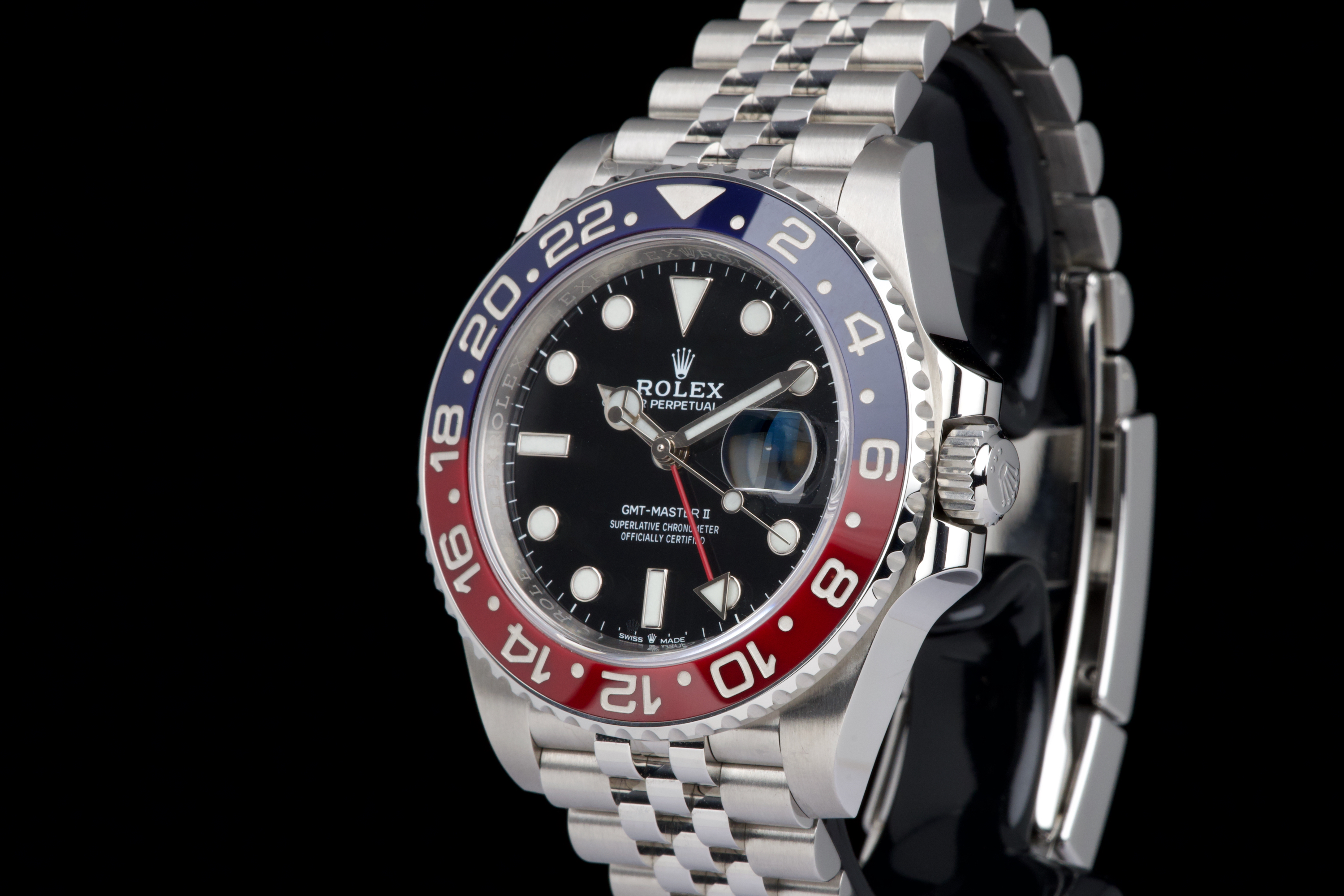 Rolex GMT-Master II “Pepsi” 126710BLRO, Full Set 2019. The watch is fitted with the jubilee bracelet and has just been polished by our watchmaker, now presenting in excellent overall condition. Featuring the iconic red and blue Cerachrom bezel and black dial, this modern GMT-Master II combines Rolex’s legendary design with contemporary reliability. Complete with its original box, warranty card, booklets and tag. A highly desirable and timeless modern Rolex sports model.
