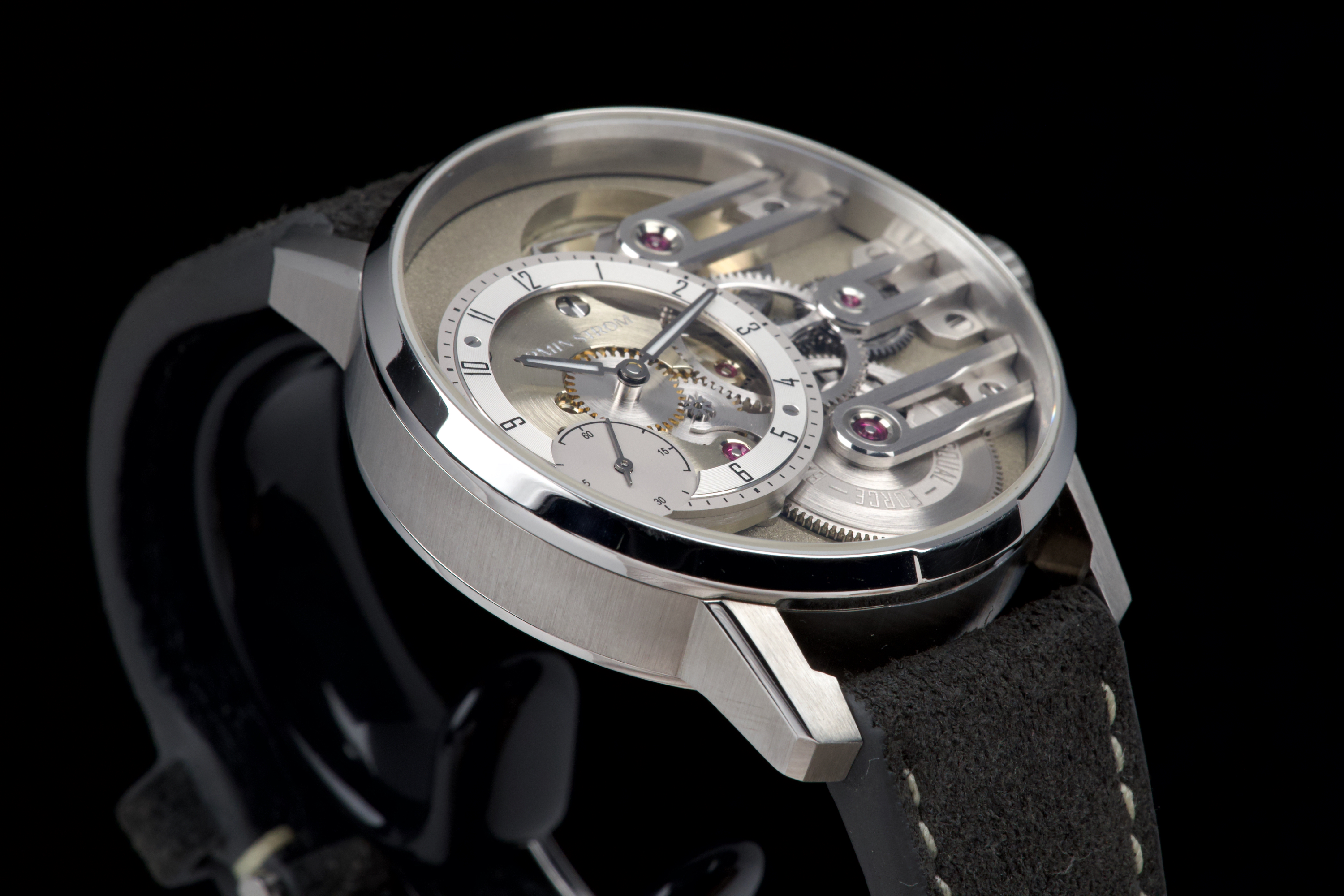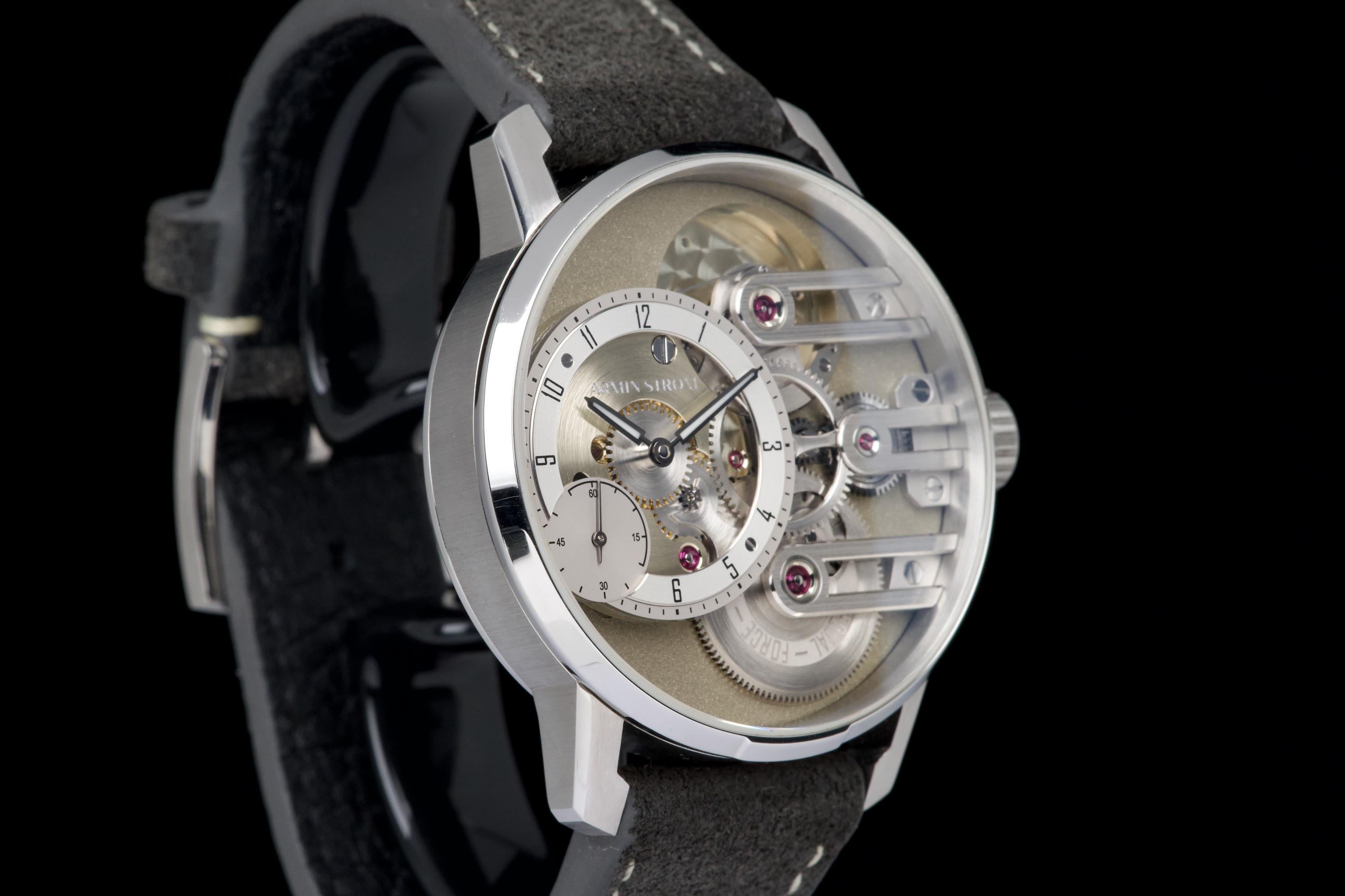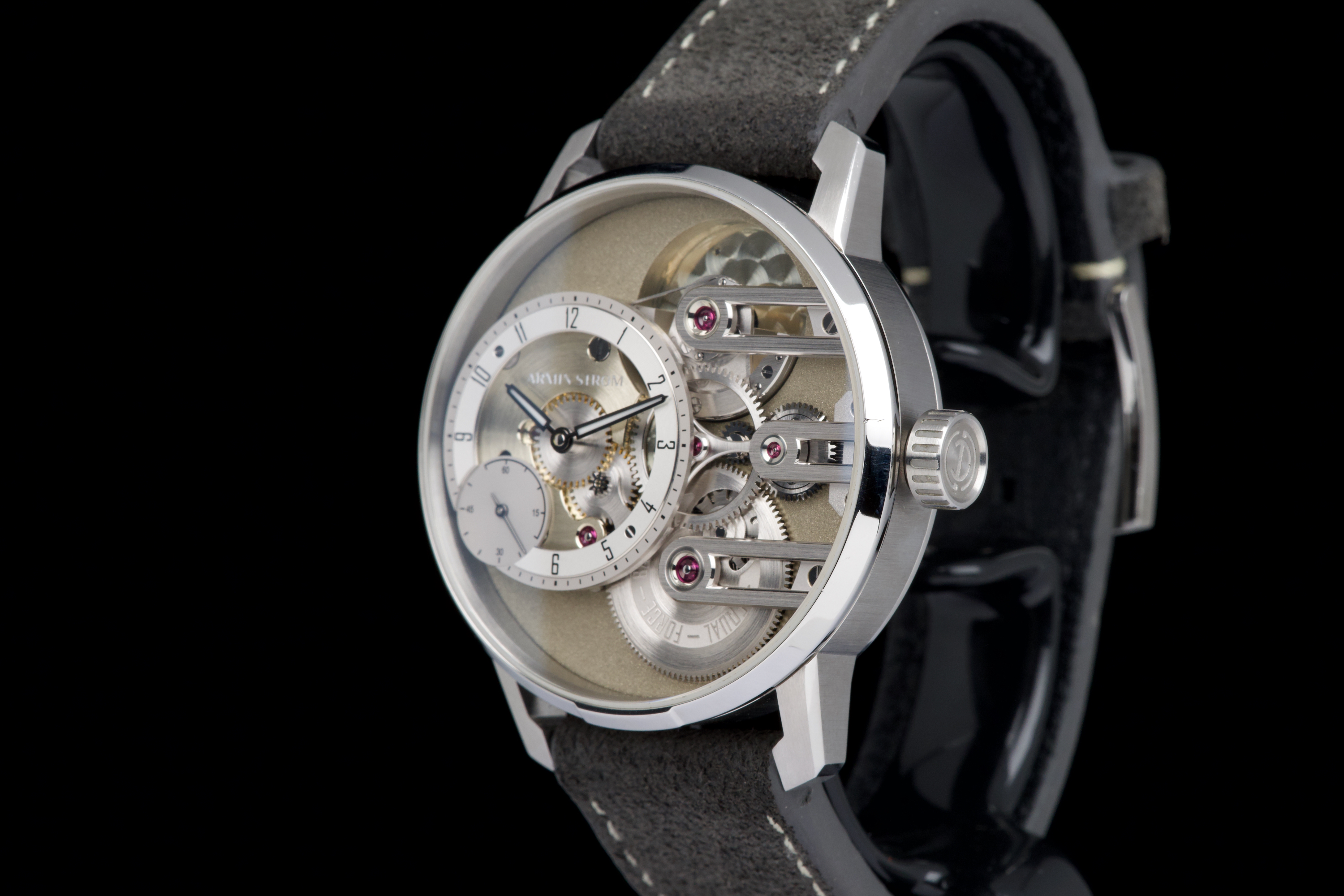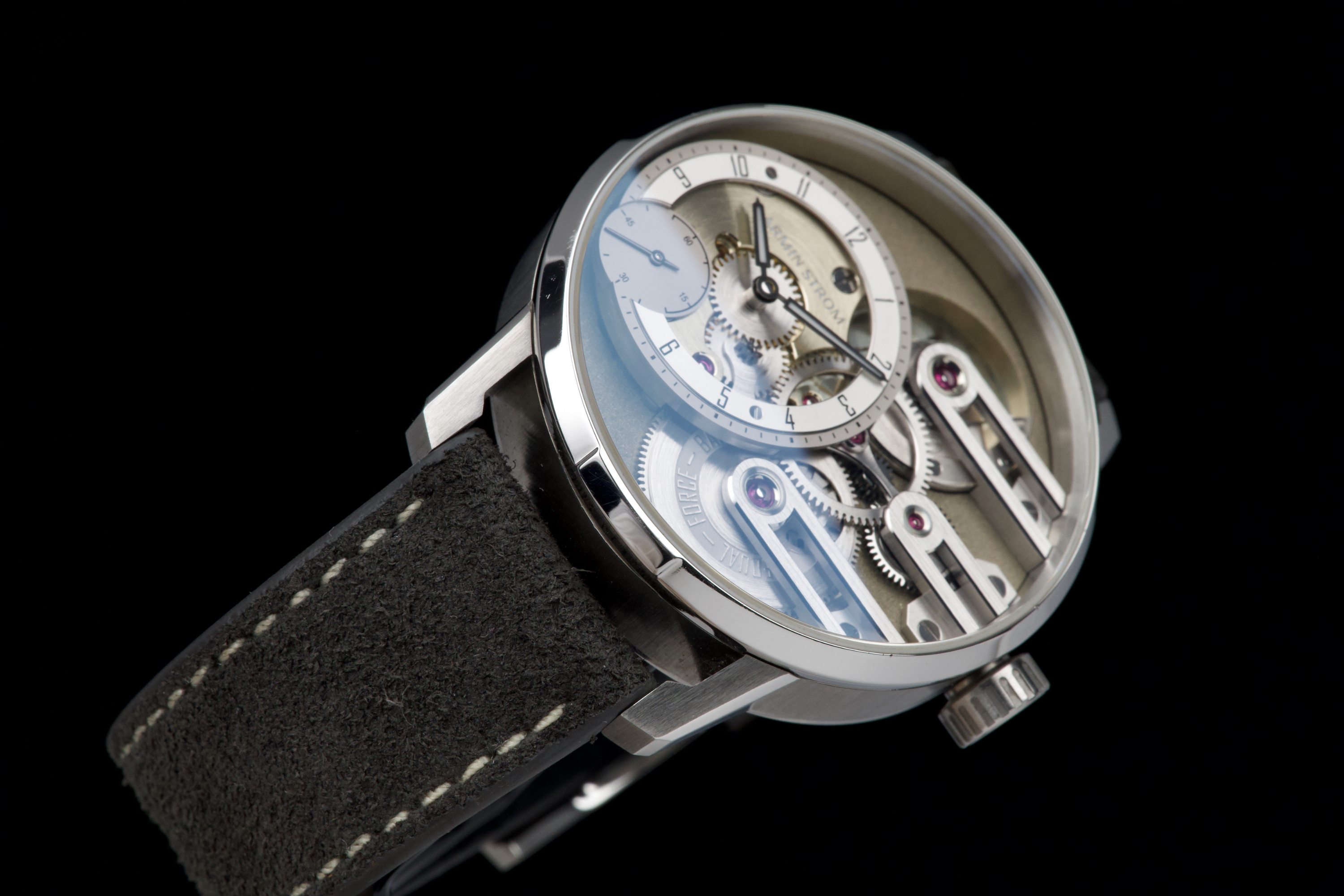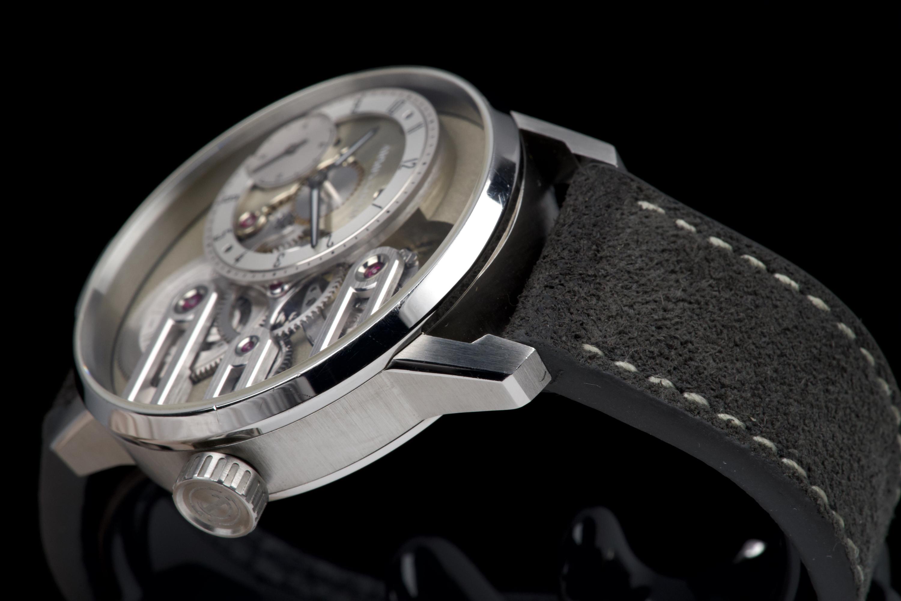 A superb example of the Armin Strom Gravity Equal Force “Monochrome” Souscription 3, coming from its original owner and complete with its full 2024 set. Limited in production (33 pieces) and part of the collaboration series with Monochrome Watches, this edition features a stainless steel case with a grey openworked dial showcasing Armin Strom’s distinctive micro-mechanical aesthetic. The watch shows light wear from careful use and remains in excellent overall condition. Powered by the in-house automatic caliber ASB19 with equal force transmission and visible micro-rotor. A rare and technically fascinating modern independent timepiece — combining contemporary design, exceptional finishing, and true horological innovation.