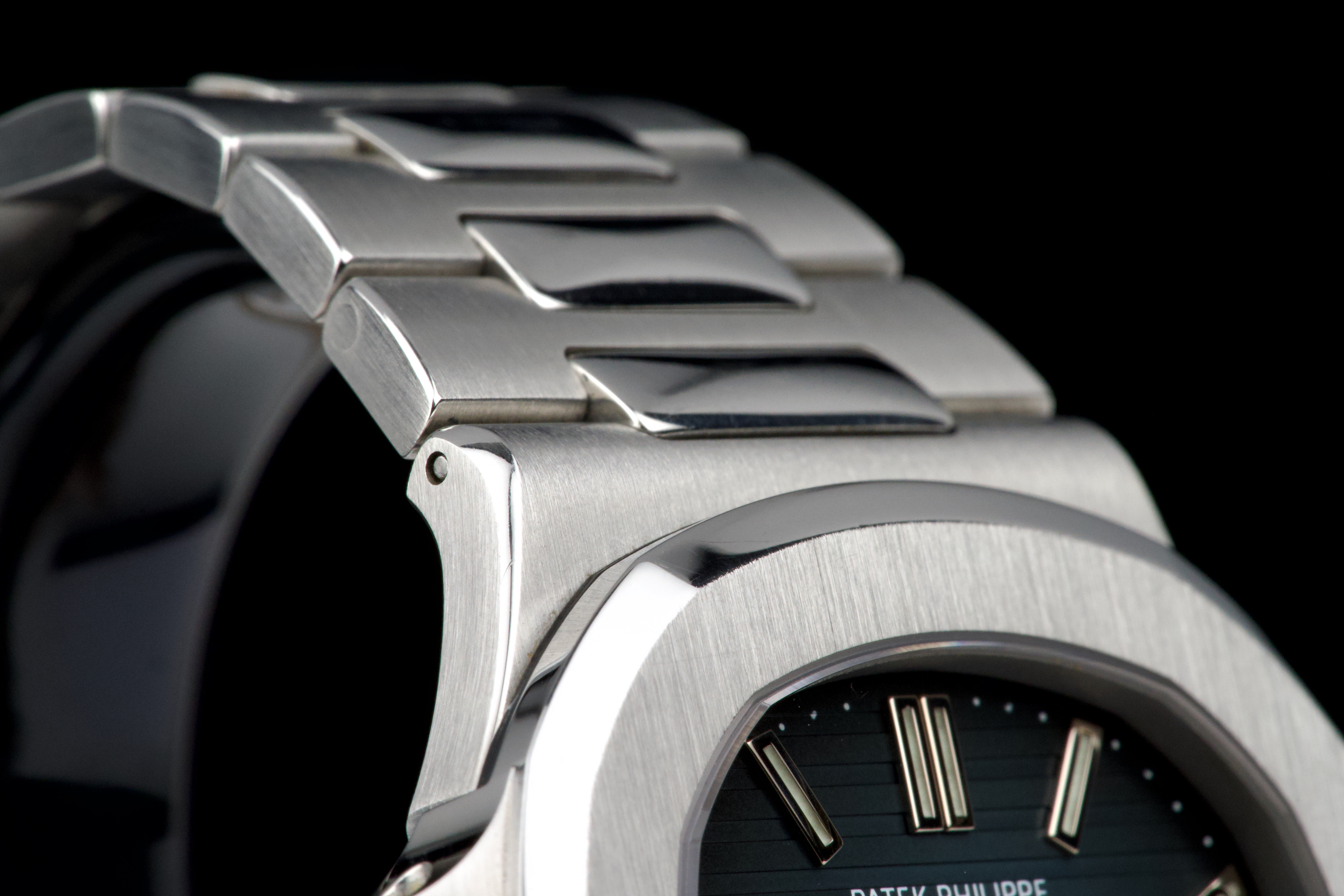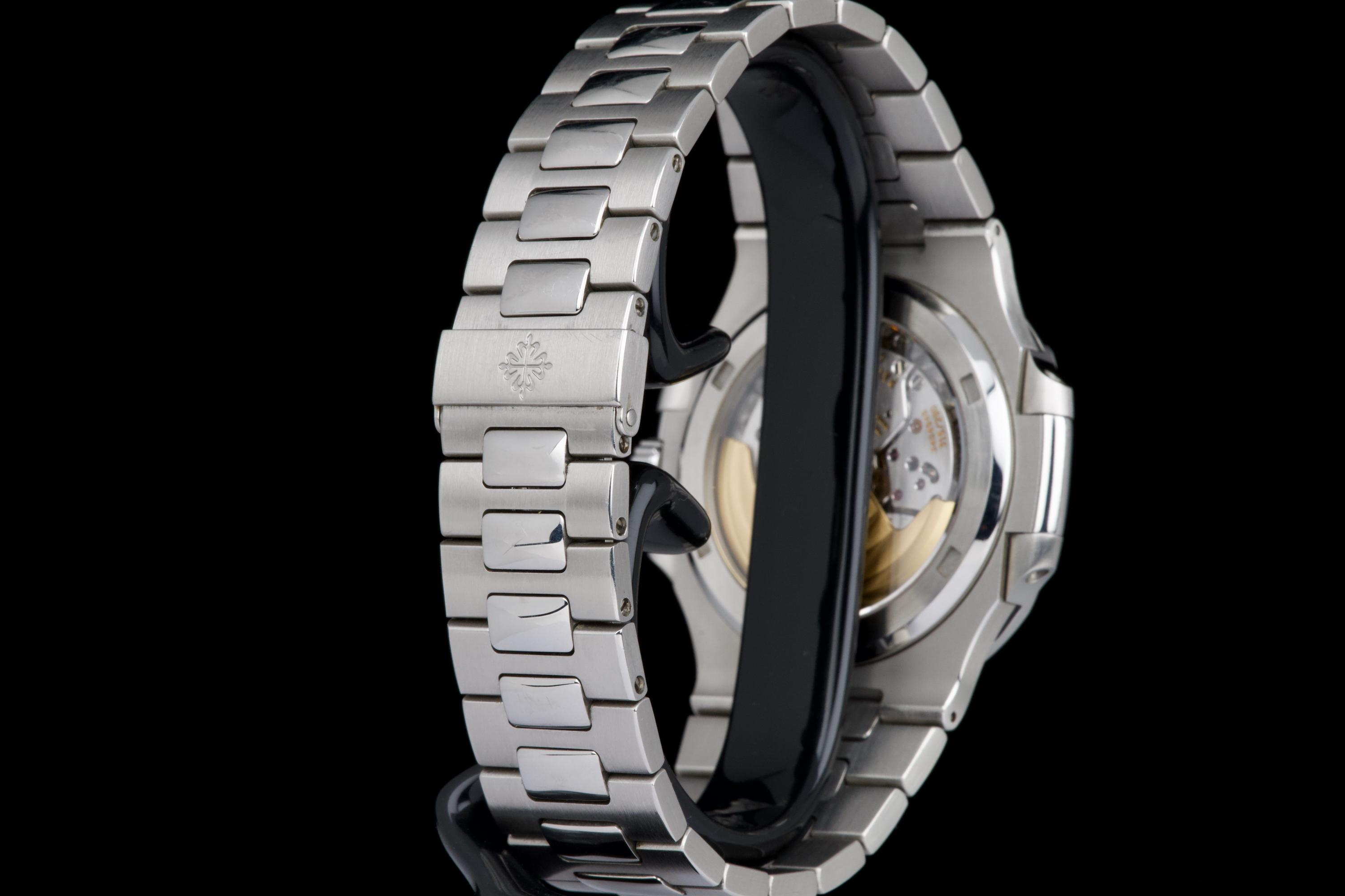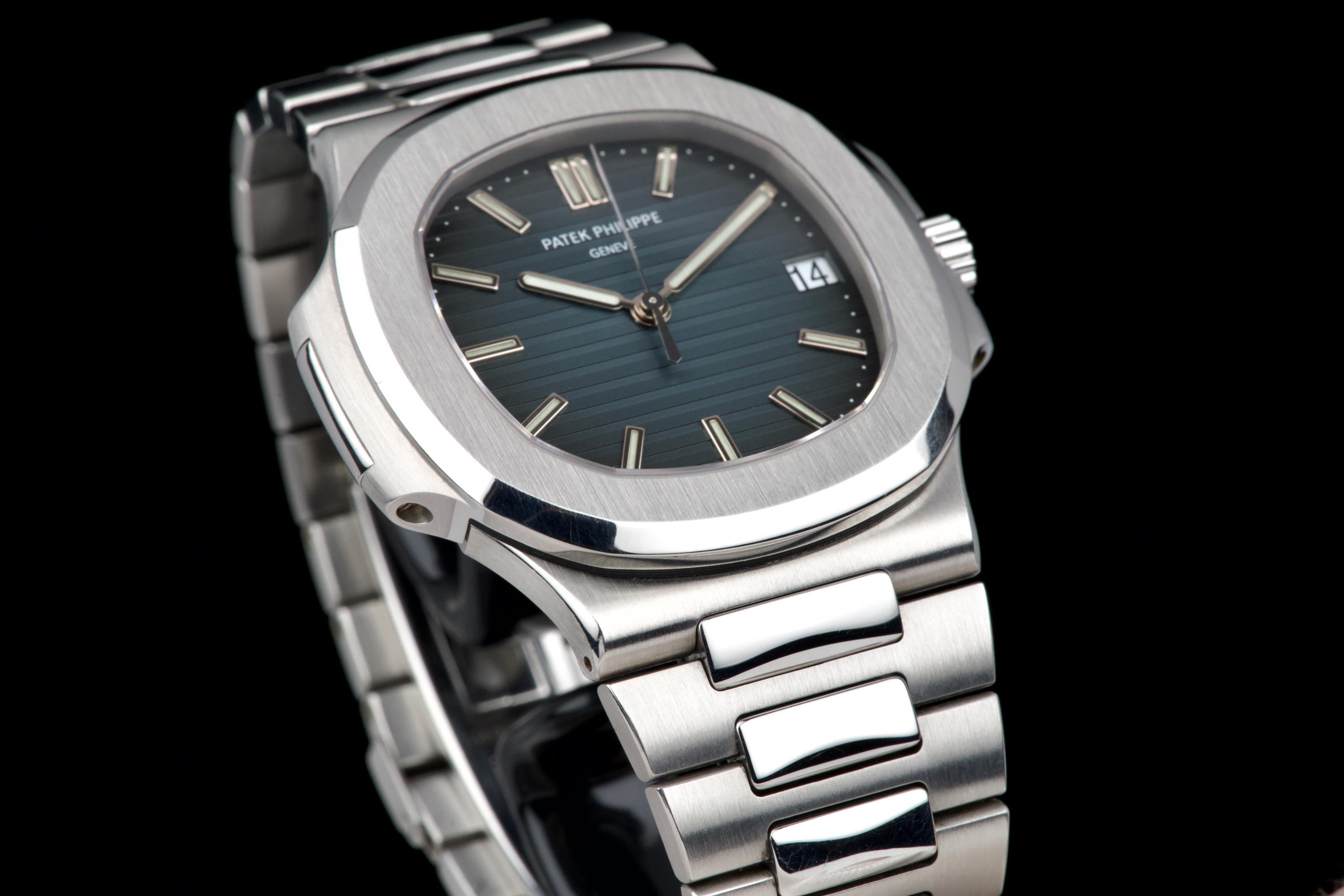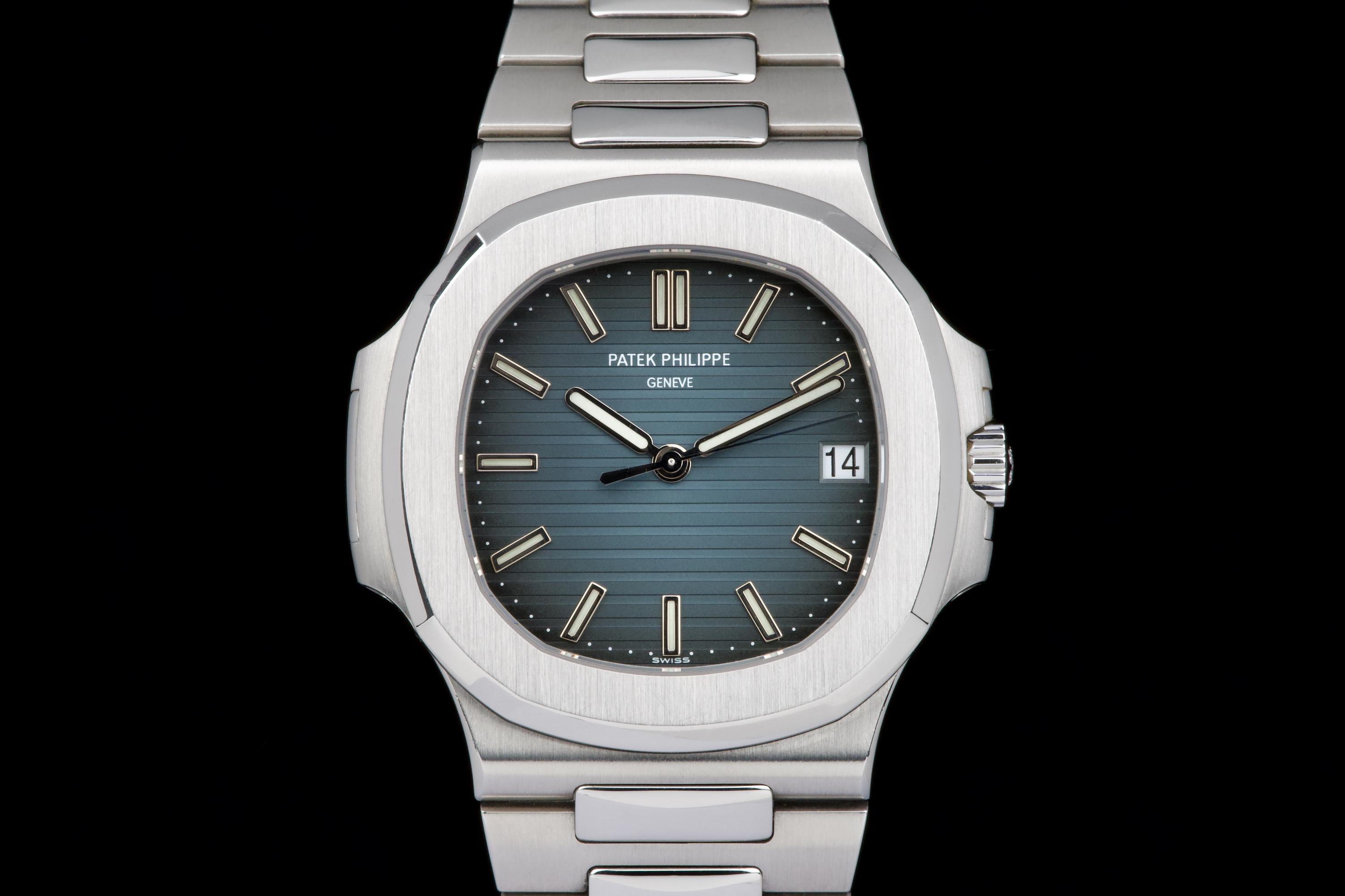 A very early and highly collectible example of the Patek Philippe Nautilus 5711/1A, featuring the first-generation MK1 dial and powered by the caliber 315 SC. Originally sold at the Patek Philippe Salons in Geneva in 2006 — the very first year of production for the reference. The watch was serviced and polished by Patek Philippe in 2019 and now shows only light wear from careful use. The iconic horizontally embossed blue dial is flawless, displaying its rich tone and perfect texture. The stainless steel bracelet shows extremely light stretch and remains tight and well preserved. Complete with its original box, certificate of origin, booklets, and accessories. A rare and historically significant first-series Nautilus 5711, representing the earliest production run of this modern icon.