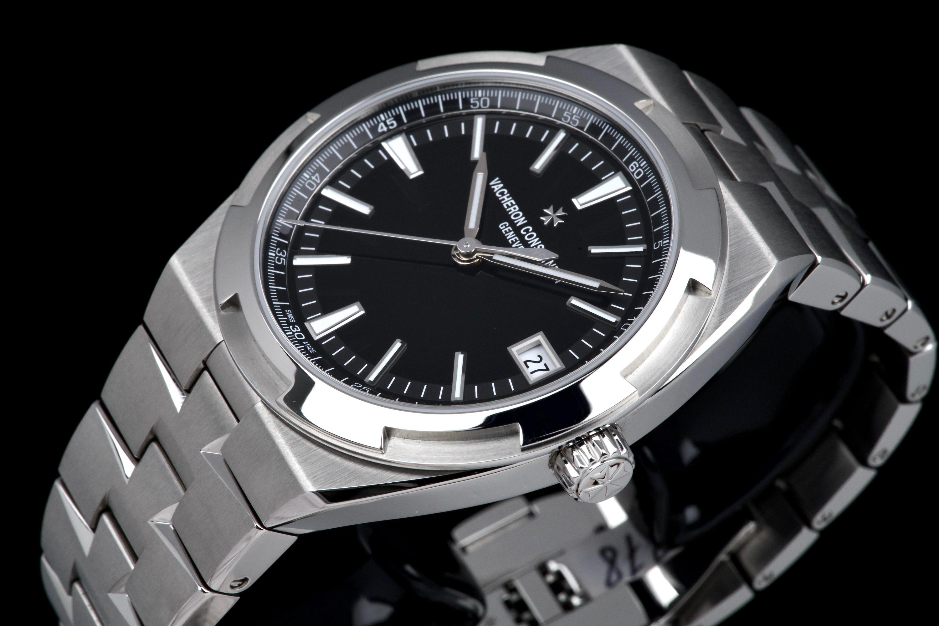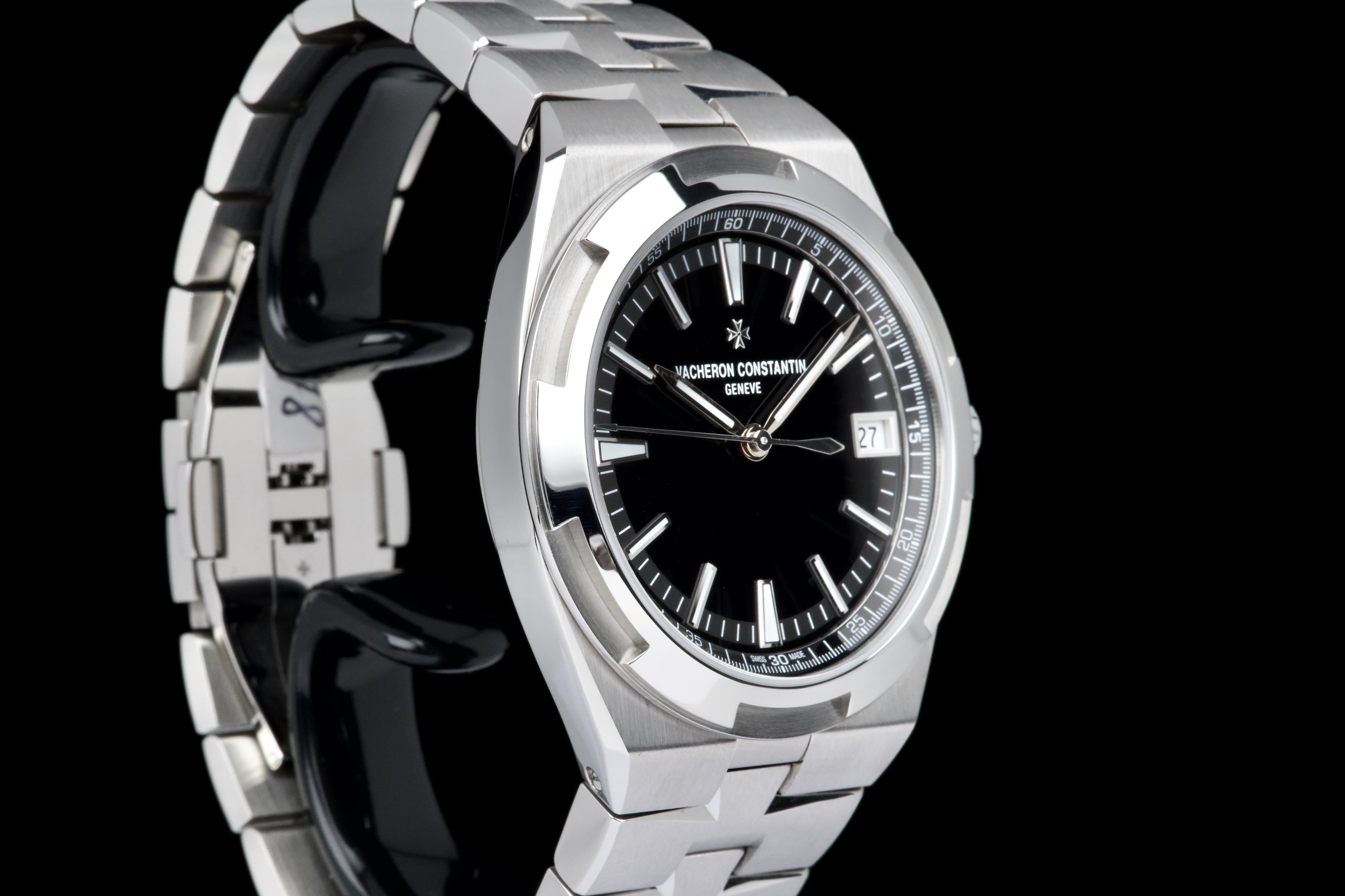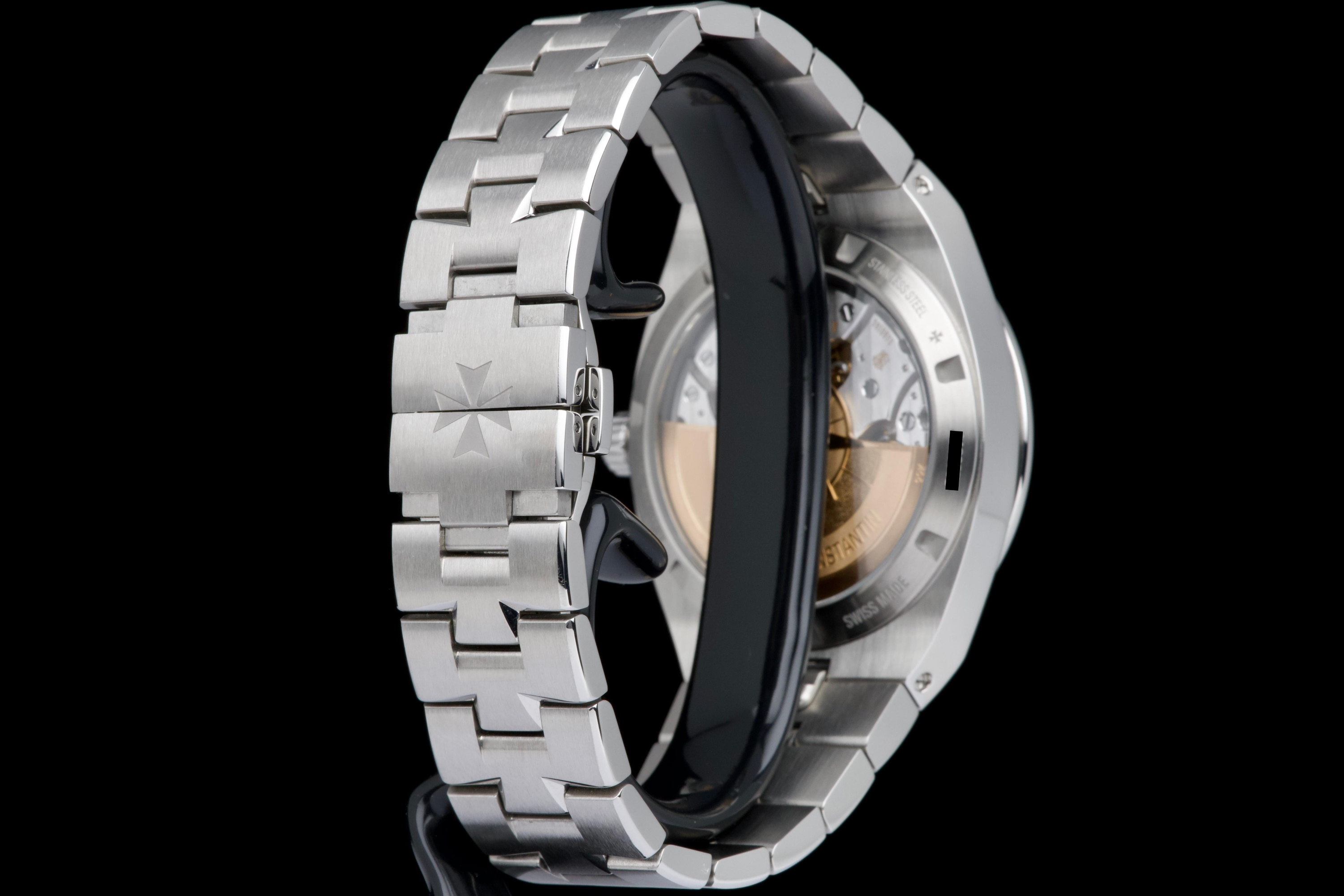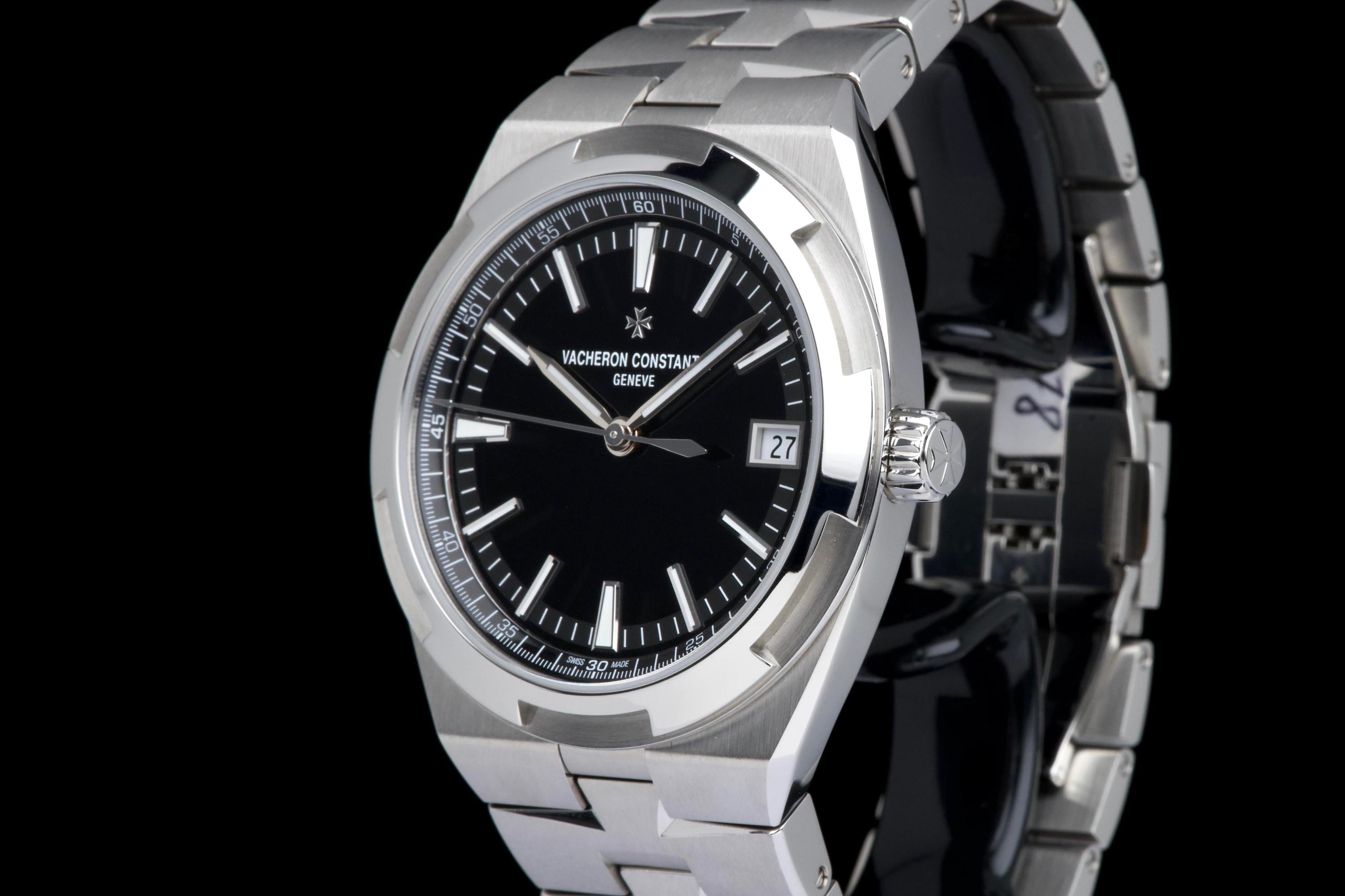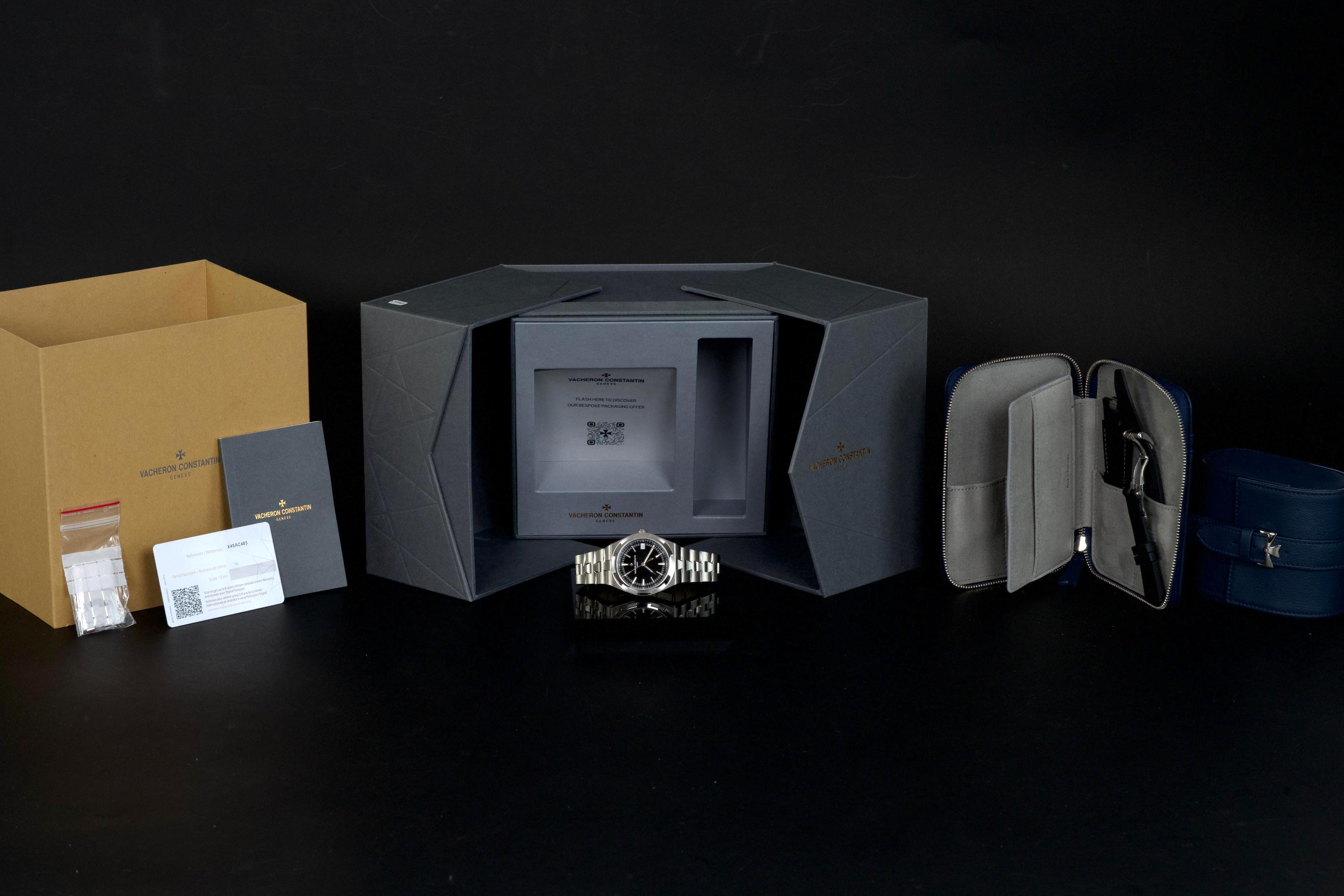 The present Vacheron Constantin Overseas reference 4520V, fitted with the elegant black dial and measuring 41 mm, is offered here as a complete full set and dates to 2025. Representing the latest generation of Vacheron Constantin’s iconic luxury sports watch, this model combines refined design with exceptional versatility. This example has been freshly polished by our watchmaker and is presented in perfect overall condition, with a flawless case, bezel, and bracelet. The clean and balanced black dial offers excellent legibility and a timeless aesthetic, while the integrated bracelet showcases the meticulous finishing for which the Overseas collection is renowned. Powered by Vacheron Constantin’s in-house automatic movement, the watch benefits from modern technical performance, including a quick-change strap system that allows effortless transitions between bracelet and strap configurations, making it ideal for both everyday and formal wear. Delivered as a full set from 2025, this Overseas 4520V represents an outstanding opportunity to acquire a current-production Vacheron Constantin sports watch in pristine condition, combining contemporary elegance, mechanical excellence, and immediate wearability.