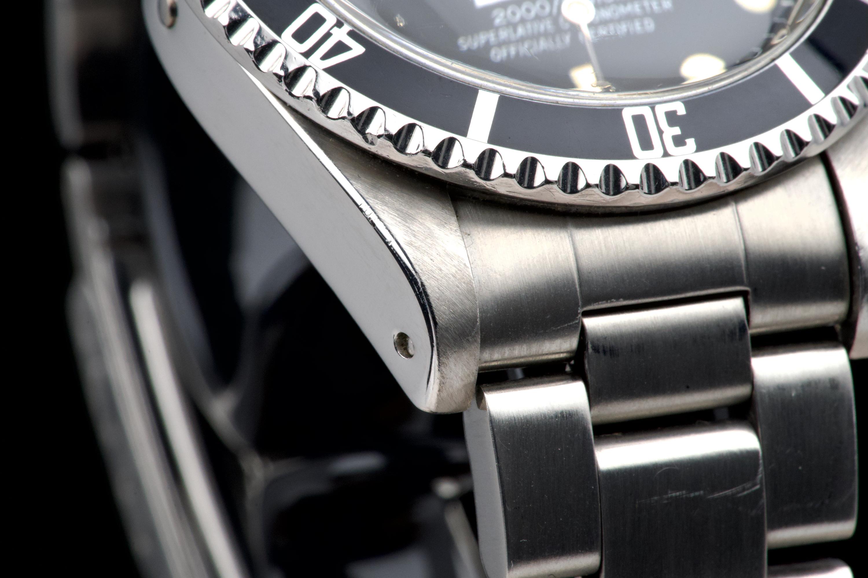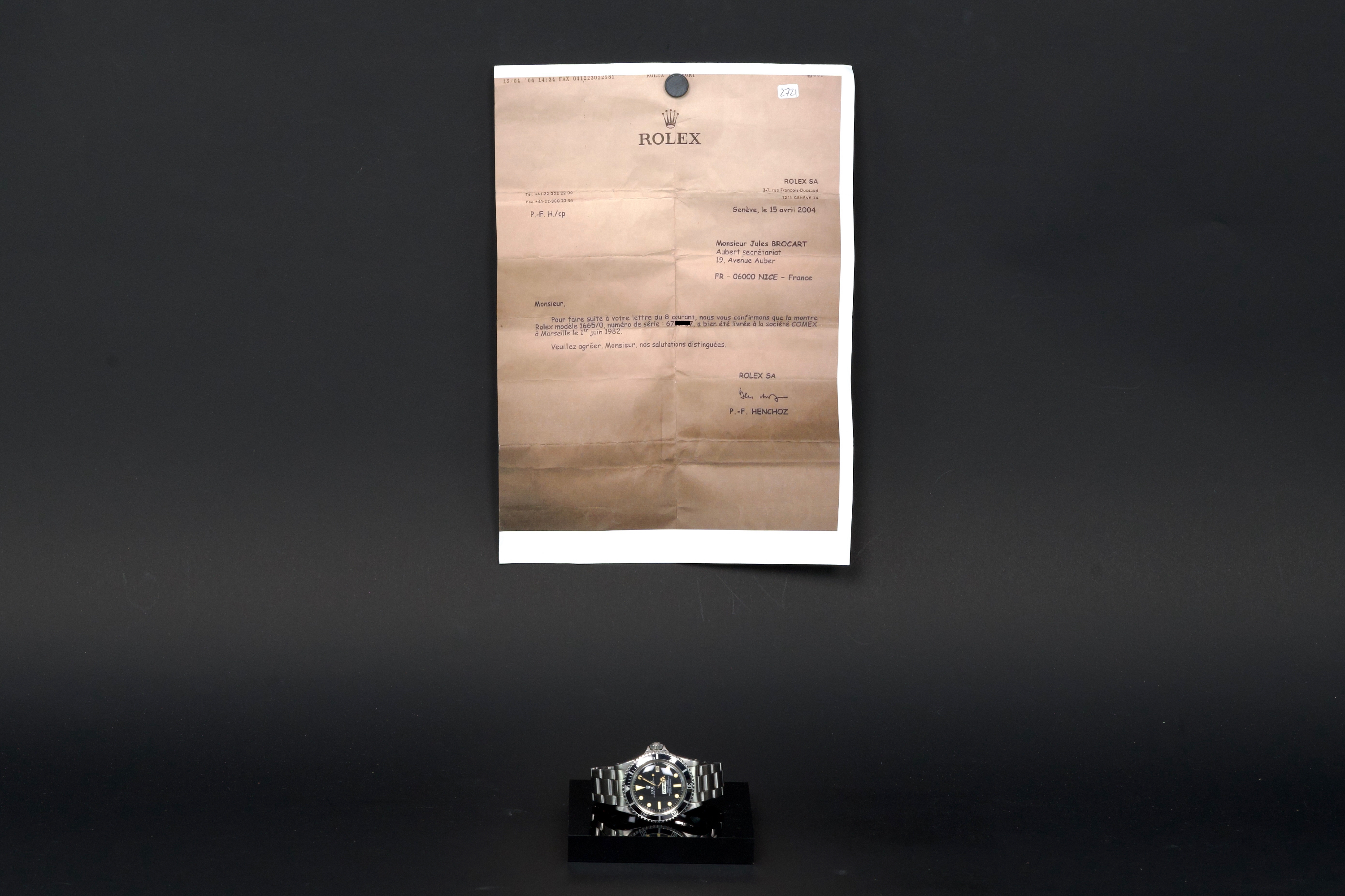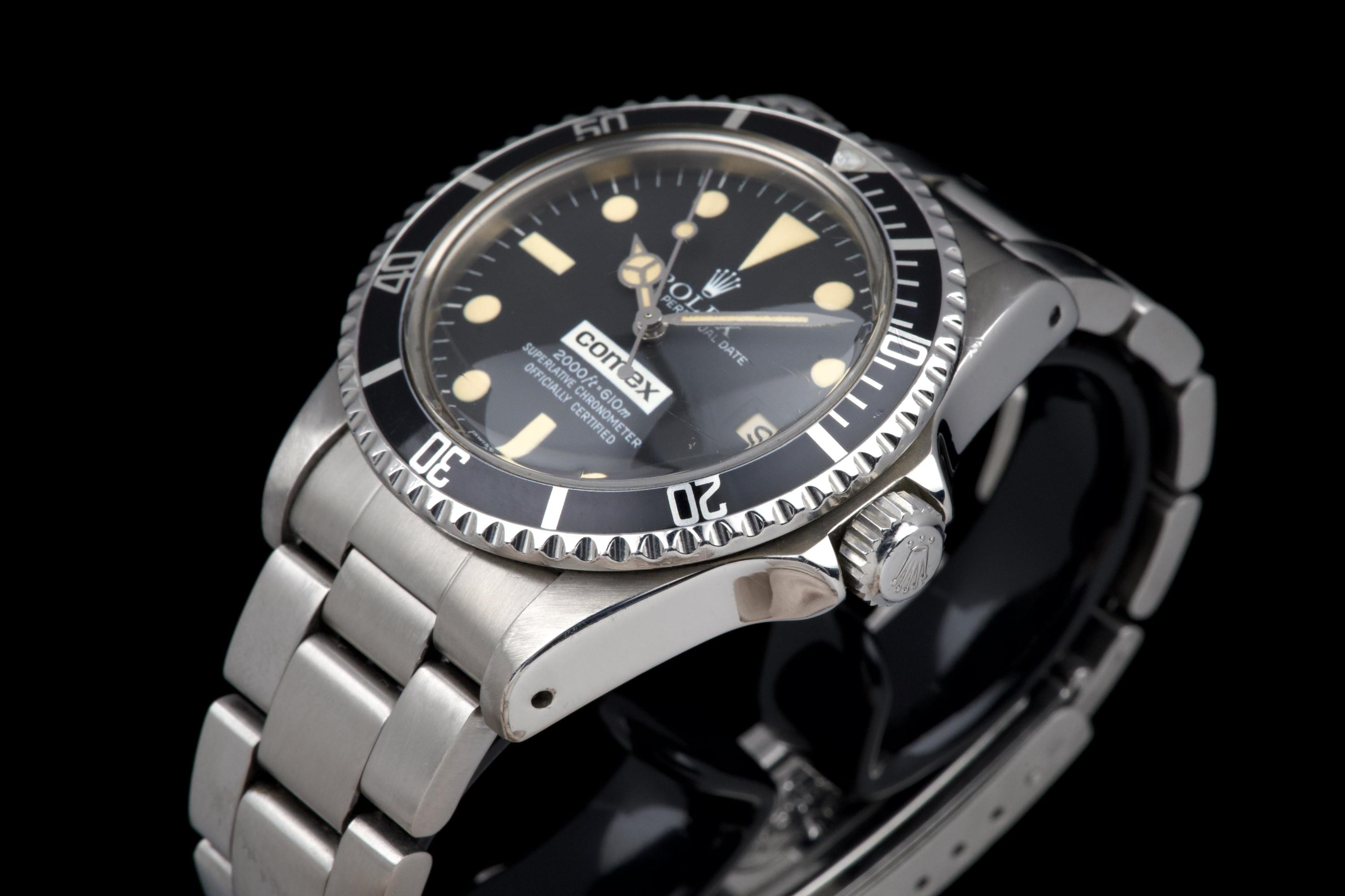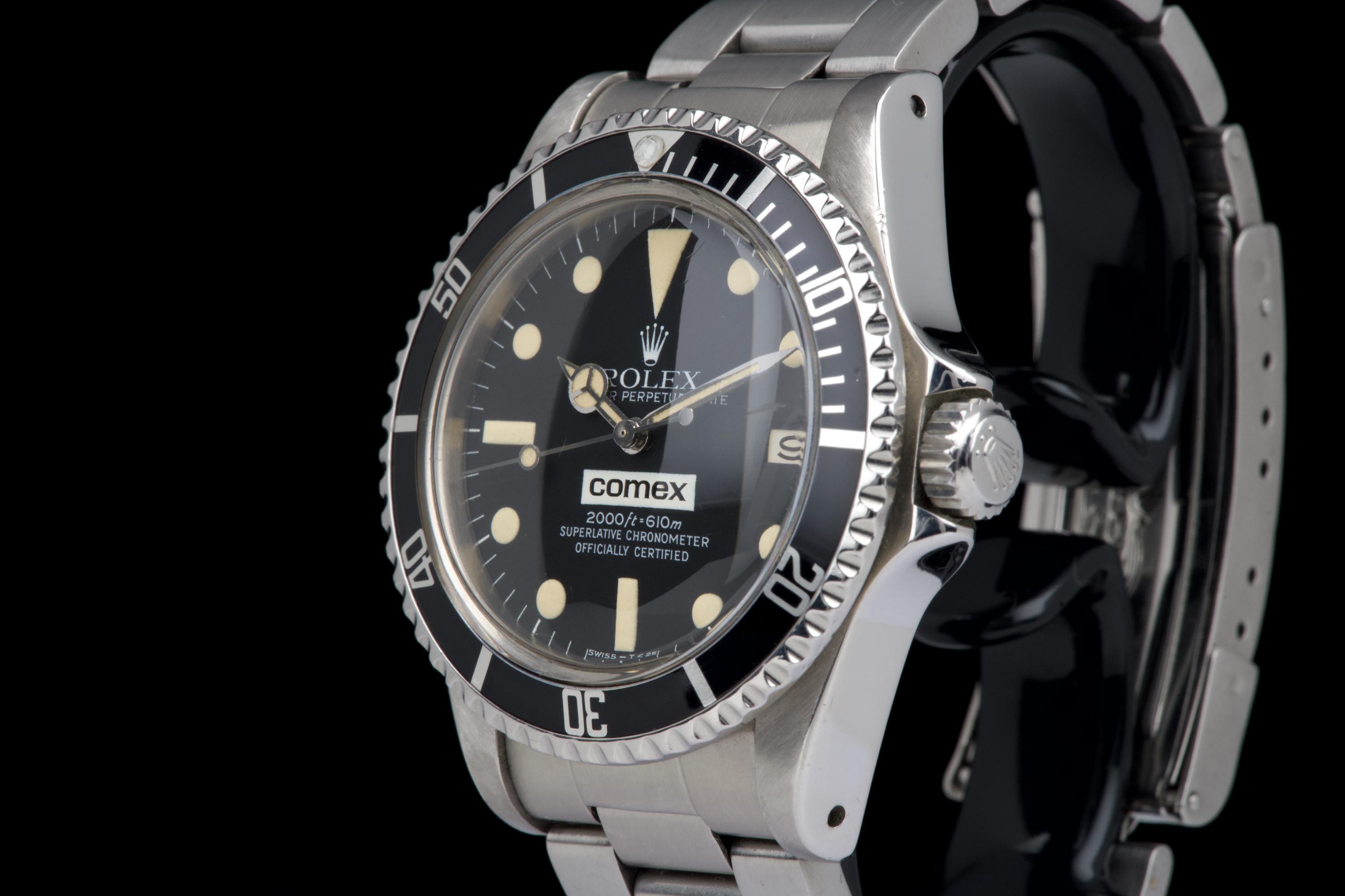 An outstanding and historically significant example of the Rolex Sea-Dweller 1665 COMEX, delivered in 1982 and belonging to the very last batch ever supplied to COMEX — this watch is among the final ten pieces, with diver engraving 229X on the caseback. The stainless-steel case remains thick, sharp, and honest, having been lightly polished in the past but retaining excellent proportions. The serial and reference numbers between the lugs are crisp and well defined (serial 6751XXX). The caseback is correctly stamped 1665 and engraved internally with the matching serial number, and externally with the diver number. The watch features its original MK2 COMEX dial (non–rail dial), entirely correct for these very late deliveries. The dial is in perfect condition, showing a beautiful and warm yellow patina on the indexes, with matching hands. The original “open 6” date disc is still present. The steel bezel and its graduated insert are both original; only the luminous pearlwas replaced with a later Luminova version. The watch is accompanied by a copy of the original Rolex letter confirming COMEX delivery to Marseille in 1982, strengthening its provenance and historical relevance. Later 93150 bracelet with 585 endlinks (claspcode N4), showing stretch consistent with professional diving use — entirely expected and characteristic of authentic COMEX tools. The original domed crystal shows light marks and small impacts, again reinforcing that the watch served its intended purpose. Powered by the Calibre 1570, freshly checked and running perfectly, this example combines condition, authenticity, and superb provenance. A truly exceptional and desirable COMEX 1665 — one of the final ones ever issued, with confirmed delivery, correct MK2 dial, diver engraving, and all the hallmarks of a genuine tool-used COMEX Sea-Dweller. A trophy-level piece for the serious collector.