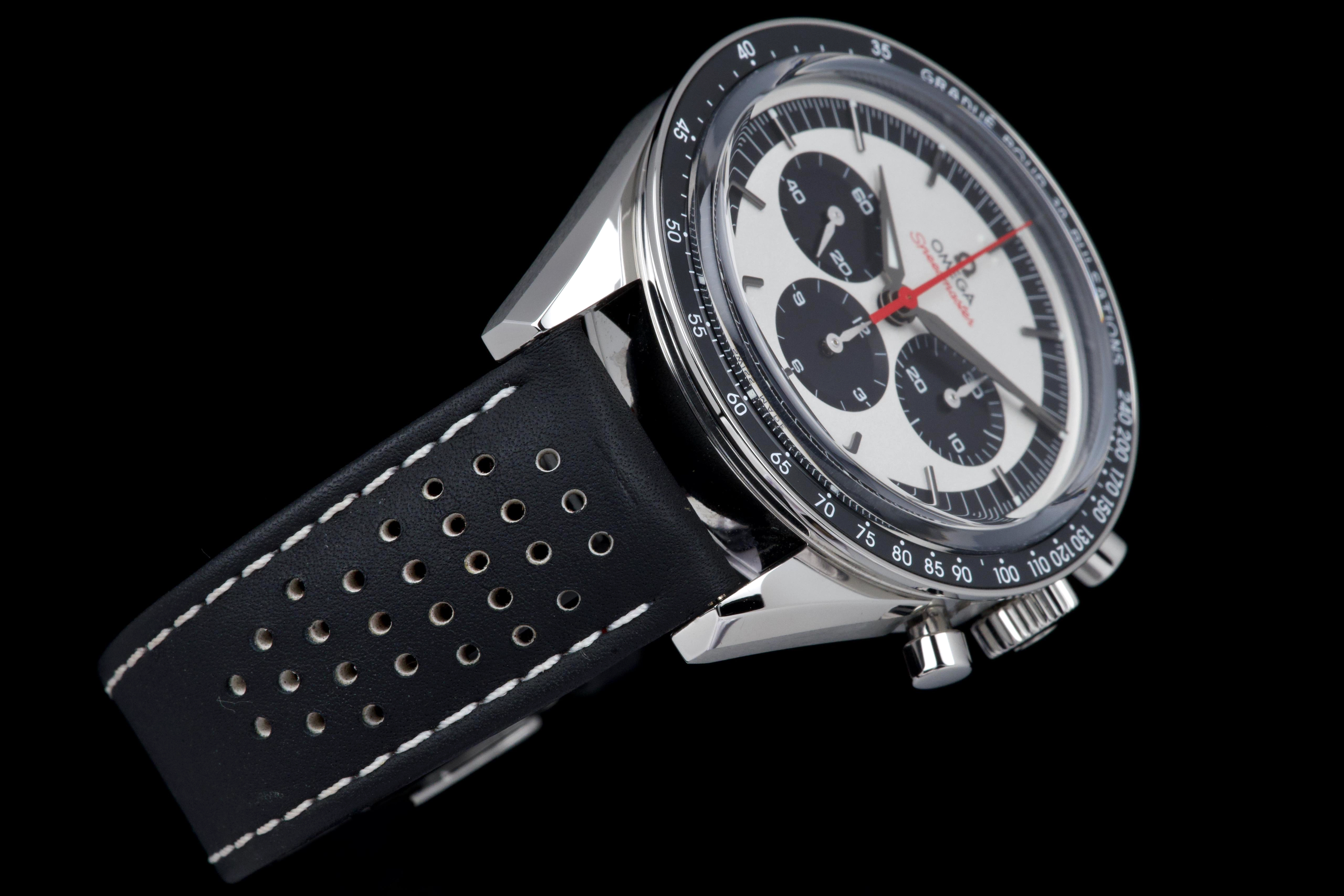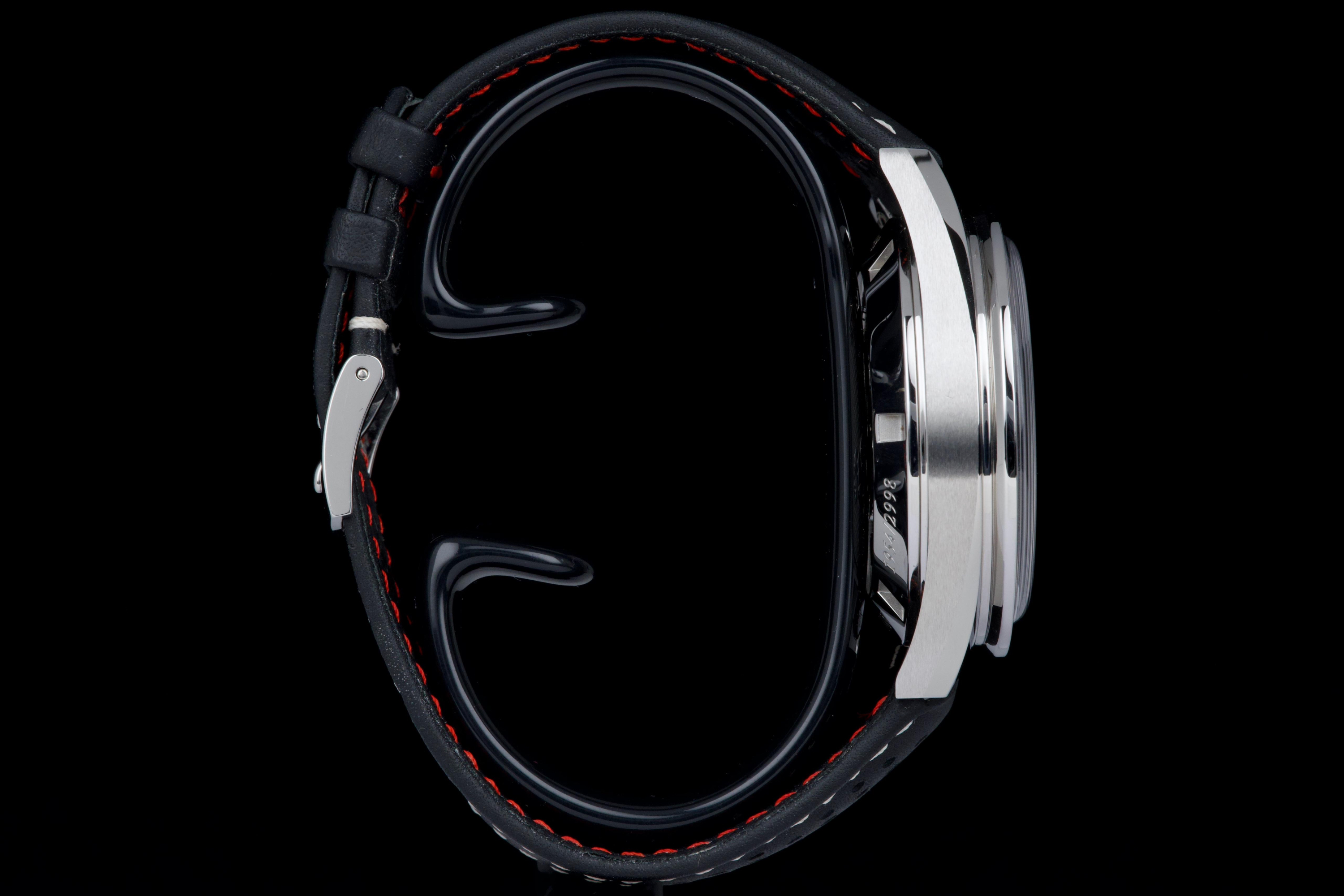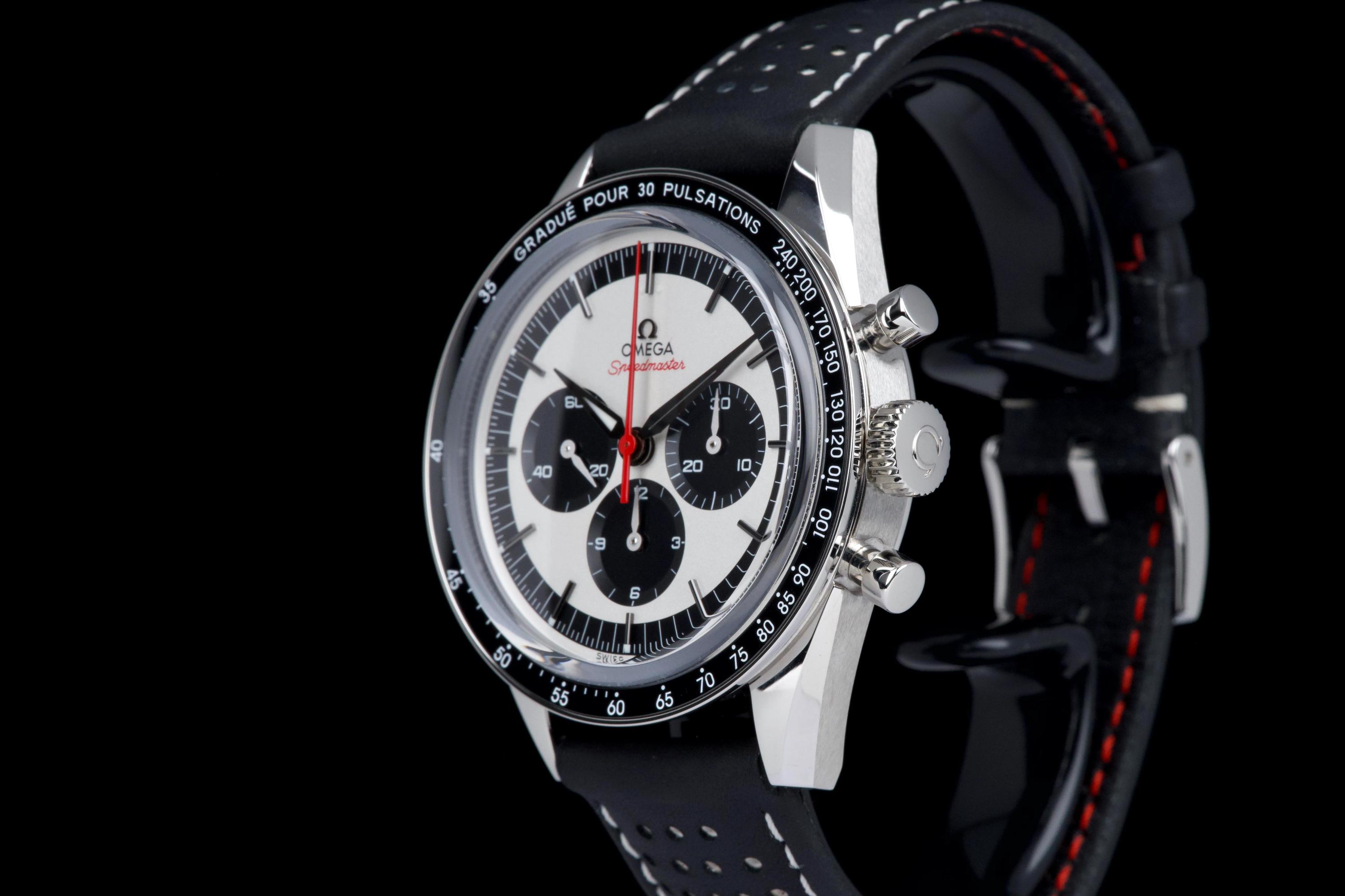 The present Omega Speedmaster Professional Moonwatch “CK2998” reference 311.23.40.30.02.001, dating to 2019, is a highly attractive and collectible limited-edition reinterpretation of one of the earliest Speedmaster references. Offered as a complete full set and coming from the original owner, this watch combines strong provenance with excellent overall condition, showing only very light wear from use. Inspired by the historic CK2998 of 1959, this modern tribute features a 39.7 mm stainless-steel case, closely reflecting the proportions of the original model and offering a refined vintage presence on the wrist. The watch is part of a limited edition of 2,998 pieces, a direct reference to the original CK2998 designation, making it particularly appealing to Speedmaster collectors. The dial features a beautiful silvered opaline finish with contrasting blue sub-dials, complemented by alpha-style handsand a blue ceramic tachymeter bezel, all details inspired by early Speedmaster aesthetics. These elements give the watch a distinctive vintage character while maintaining modern build quality. The watch is powered by Omega’s renowned manual-winding chronograph movement, derived from the Moonwatch lineage and celebrated for its robustness and reliability. Delivered as a full set from 2019 and preserved in excellent condition with single-owner provenance, this Speedmaster CK2998 limited edition represents a compelling opportunity to acquire a historically inspired Moonwatch with strong collectability and timeless design.