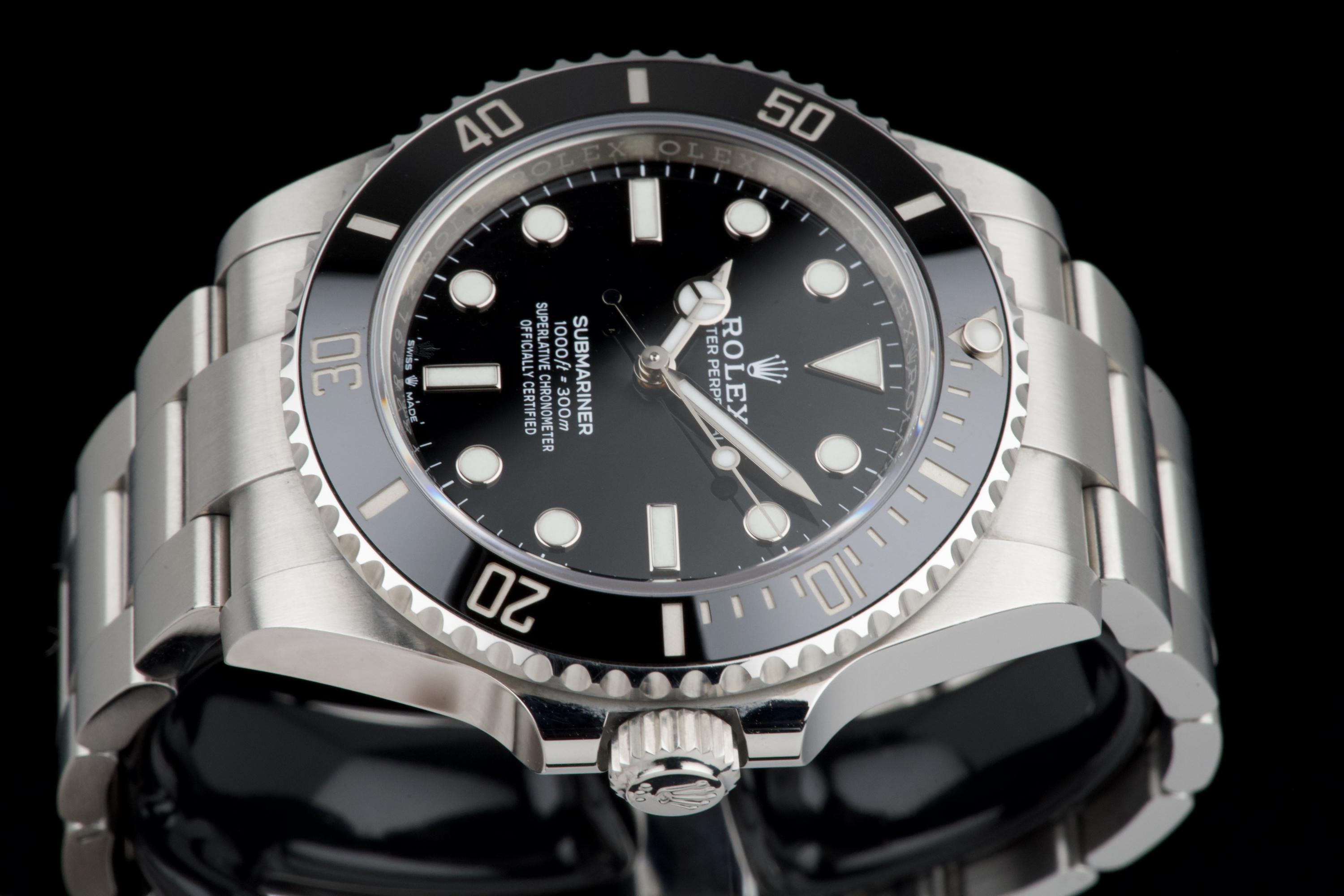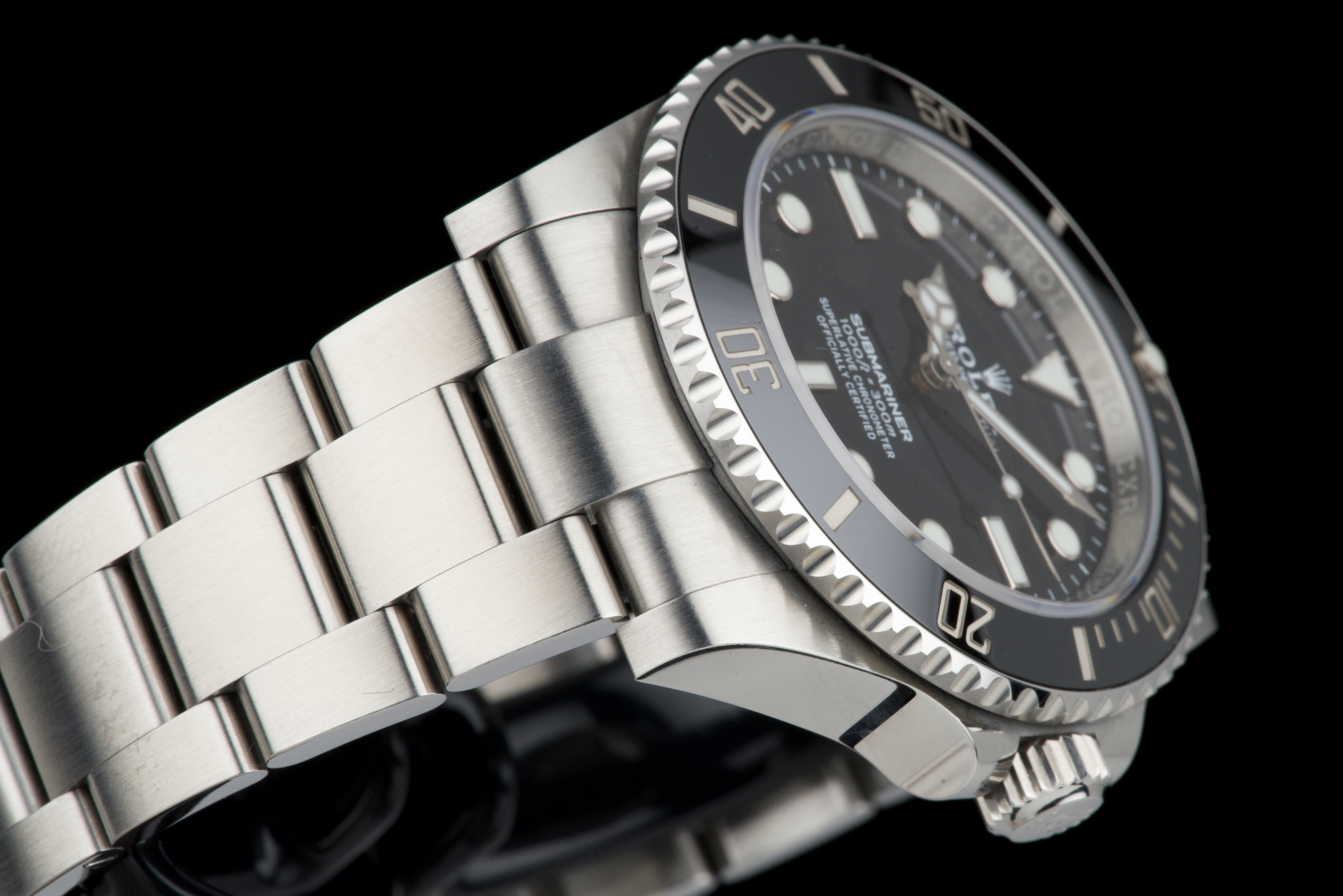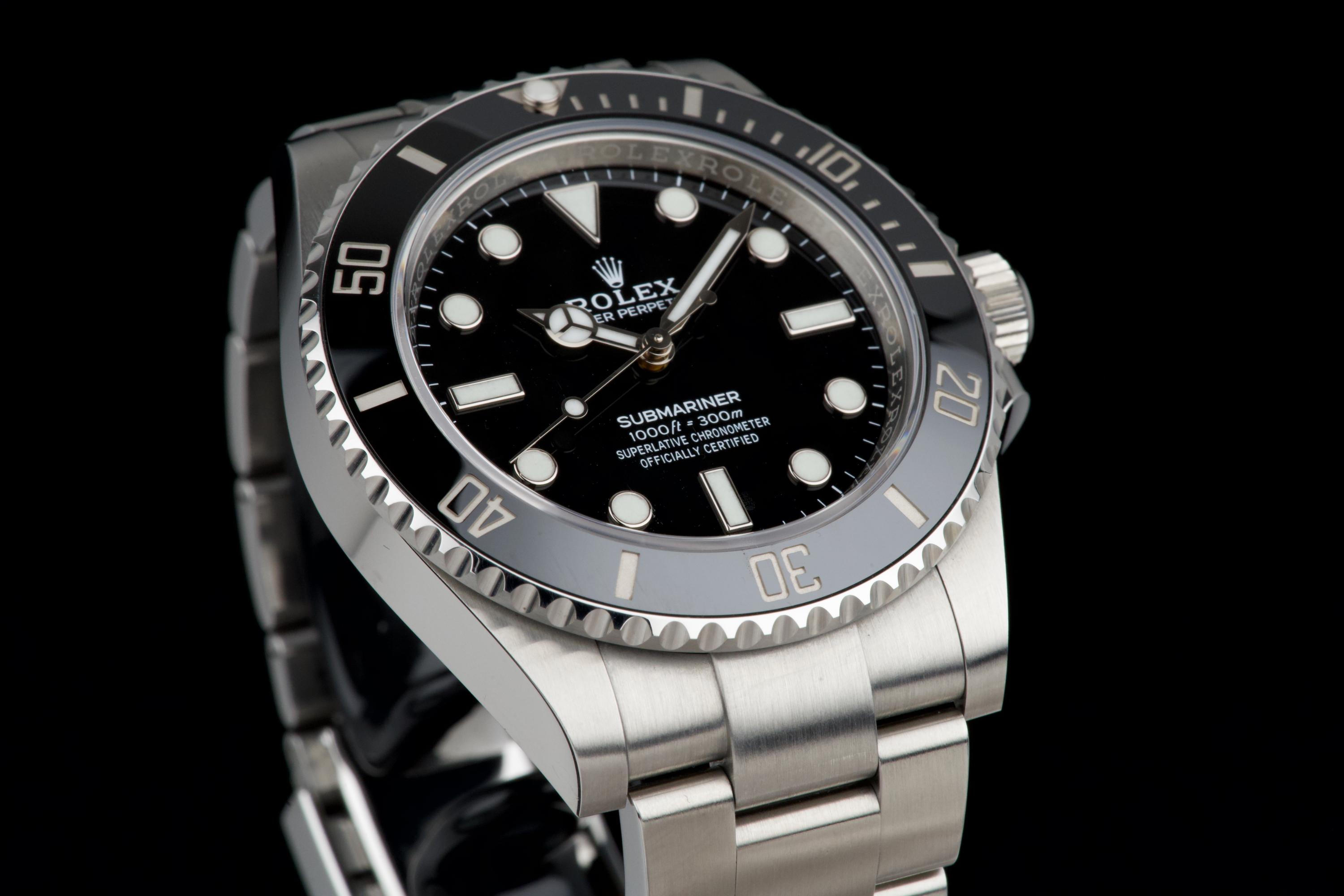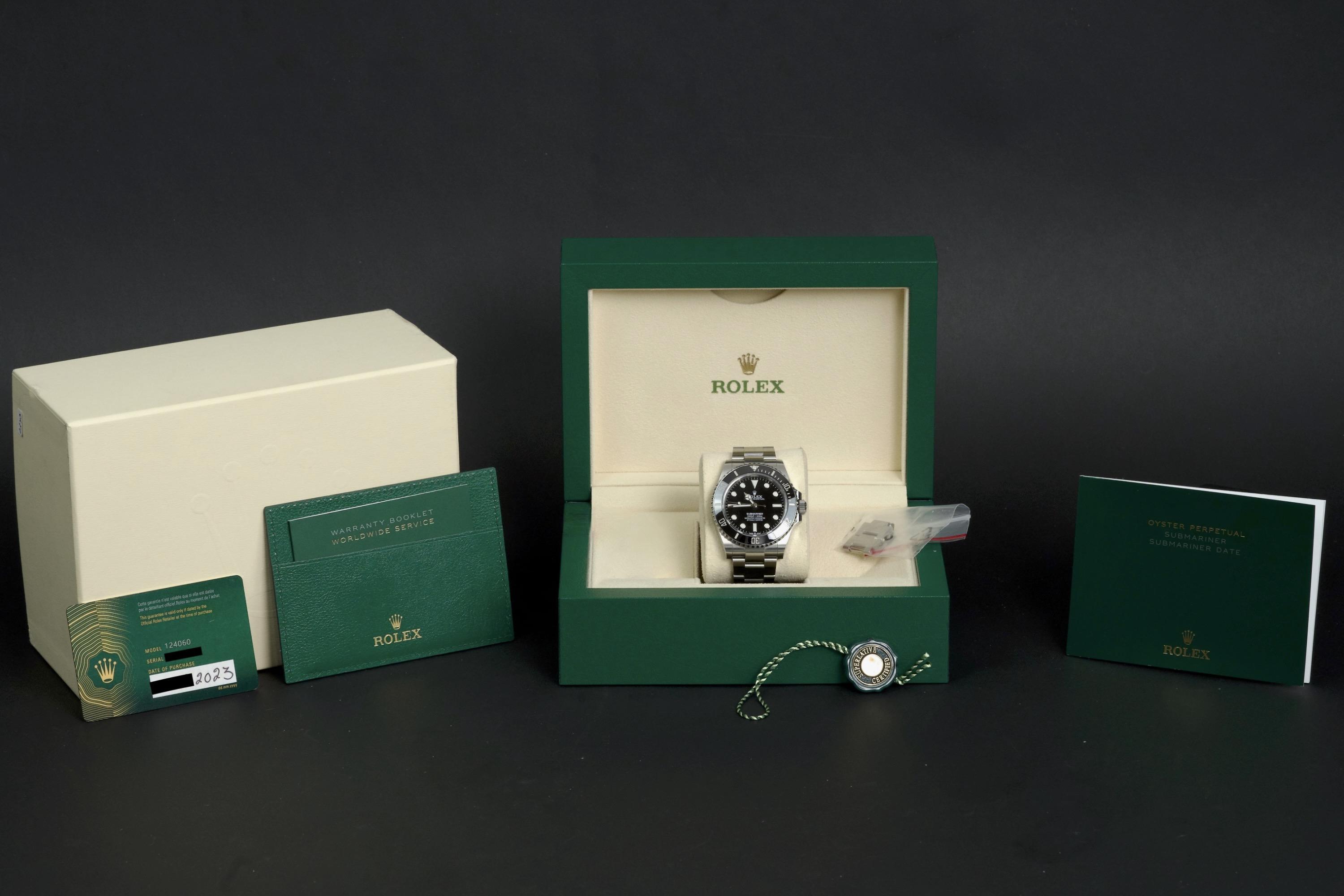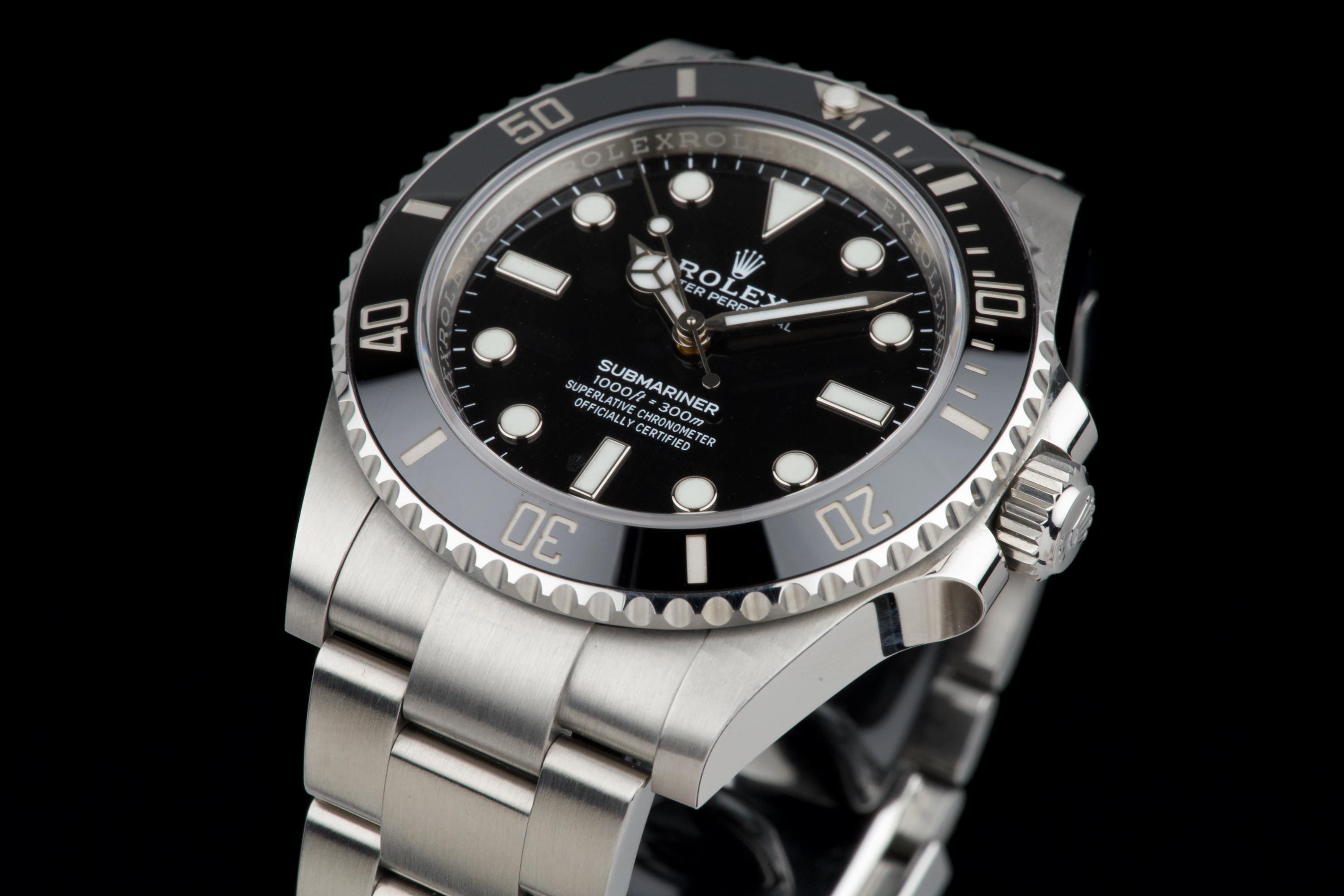 Presented here is a contemporary and highly desirable example of the Rolex Submariner reference 124060LN, the classic no-date Submariner in stainless steel. Launched as part of Rolex’s modern Submariner line, this model combines iconic design, robust performance, and everyday wearability, representing the ultimate expression of the professional dive watch. This example dates to 2023 and has just been professionally polished by our watchmaker, presenting in top condition with crisp case lines and a flawless overall appearance. The black dial and Cerachrom bezel retain their sharp contrast and perfect legibility, while the Oyster bracelet remains robust and comfortable on the wrist. Offered as a full set with its original box, papers, and accessories, this 124060LN represents an excellent opportunity to acquire a nearly new, fully documented Submariner in pristine condition, combining contemporary design, technical reliability, and strong collector appeal.