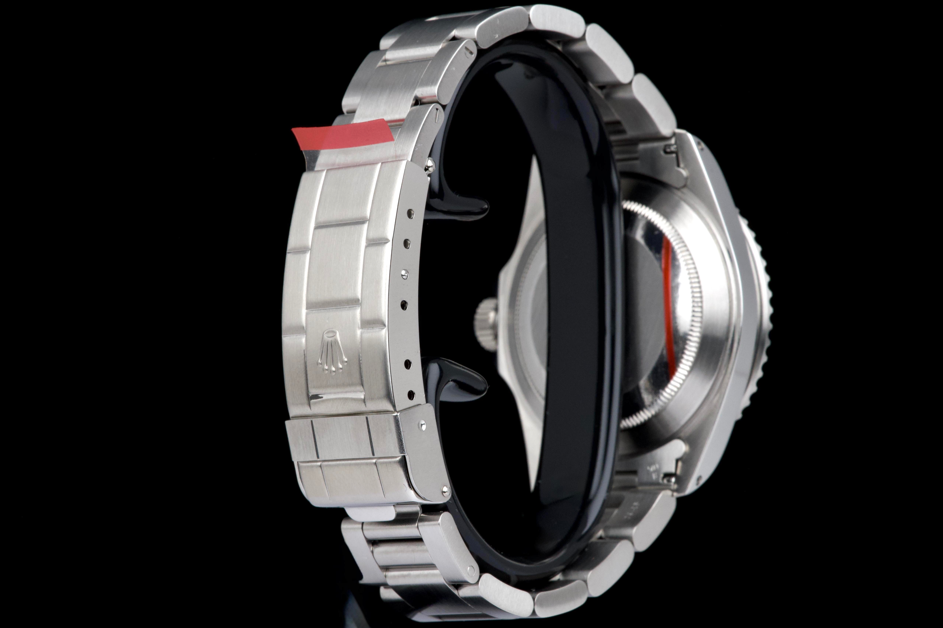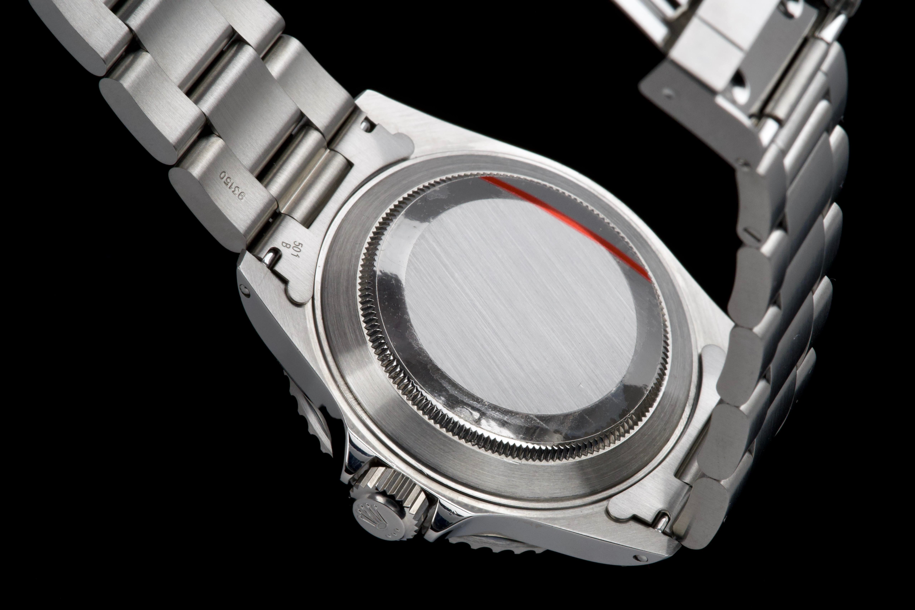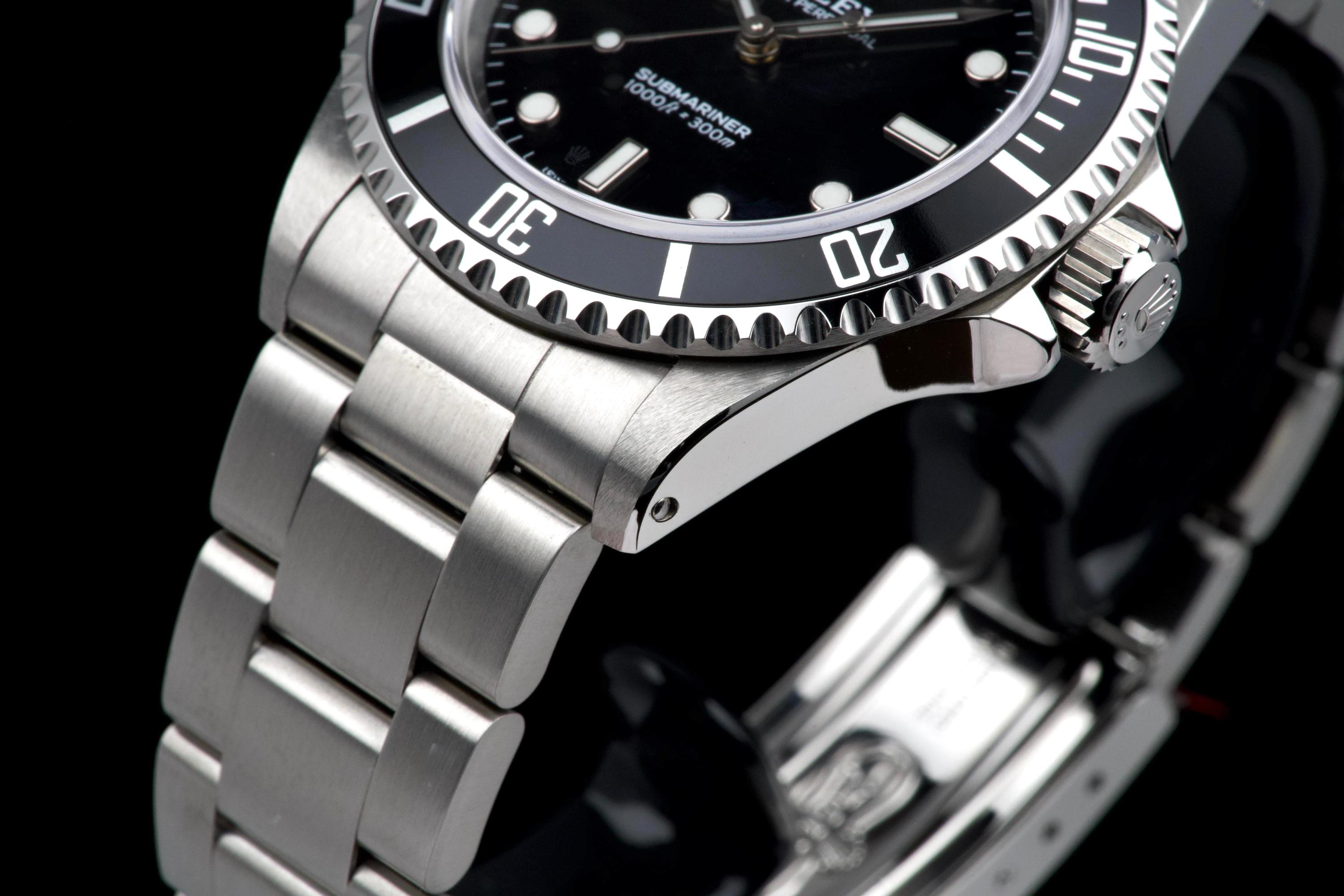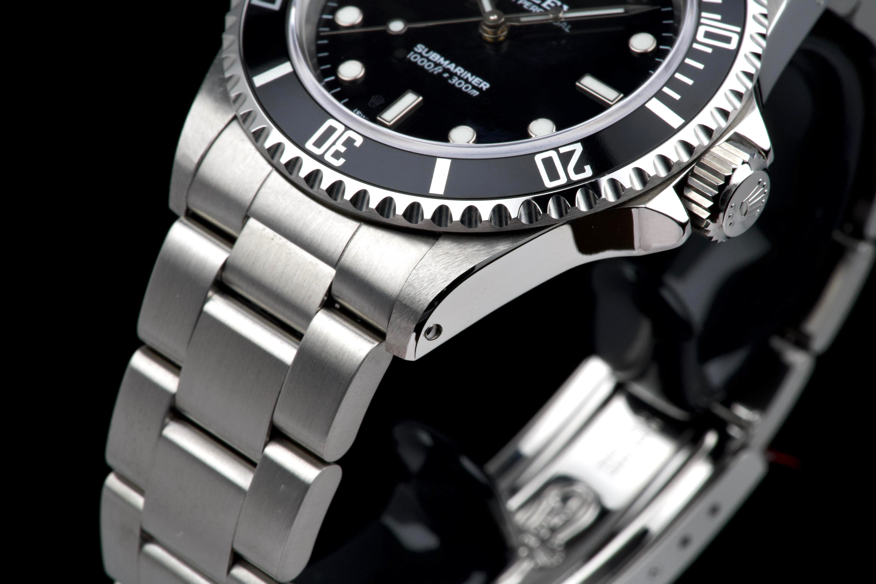 Rolex Submariner, reference 14060, stainless steel wristwatch with no-date display and bracelet, P serial, circa 2001. A quintessential expression of Rolex’s iconic dive watch, the present Submariner reference 14060 is celebrated for its clean, symmetrical dial without date, offering a pure and highly legible aesthetic. Produced in 2001 and belonging to the P serial range, this model embodies the timeless design and robust construction that have made the Submariner one of the most recognizable tool watches ever created. The watch is housed in a 40 mm stainless steel Oyster case, fitted with a unidirectional rotating bezel and sapphire crystal, ensuring durability and functionality in line with its professional diving heritage. The dial features luminous hour markers and hands, providing excellent readability in all conditions. At its heart beats a reliable Rolex automatic movement, known for its precision and robustness. The timepiece underwent a complete service at Rolex in 2025, including a full overhaul of the movement, replacement of the dial, replacement of the hands, replacement of the bezel, replacement of the insert, replacement of the crown, and replacement of the bracelet. Following this extensive intervention, the watch is presented in excellent mechanical and aesthetic condition, offering the reliability and appearance of a refreshed example. Combining the purity of the no-date Submariner with the reassurance of a comprehensive recent manufacture service, this reference 14060 represents an attractive opportunity to acquire a classic Rolex sports watch in outstanding condition.